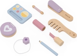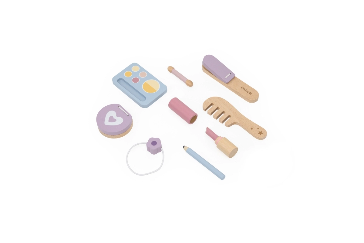 Stilingas medinis vaikų tualetinis staliukas suteikia valandas kūrybiško žaidimo. Rinkinyje yra staliukas ir saugūs mediniai priedai, tokie kaip šukos, garbanojimo žnyplės ir makiažas. Idealu vaikams nuo 3 metų. Patvari medinė konstrukcija, gausūs priedai ir kompaktiški matmenys, kad lengvai tilptų vaikų kambaryje.