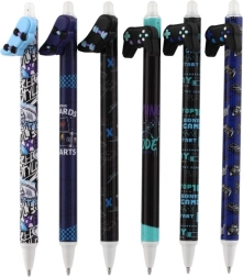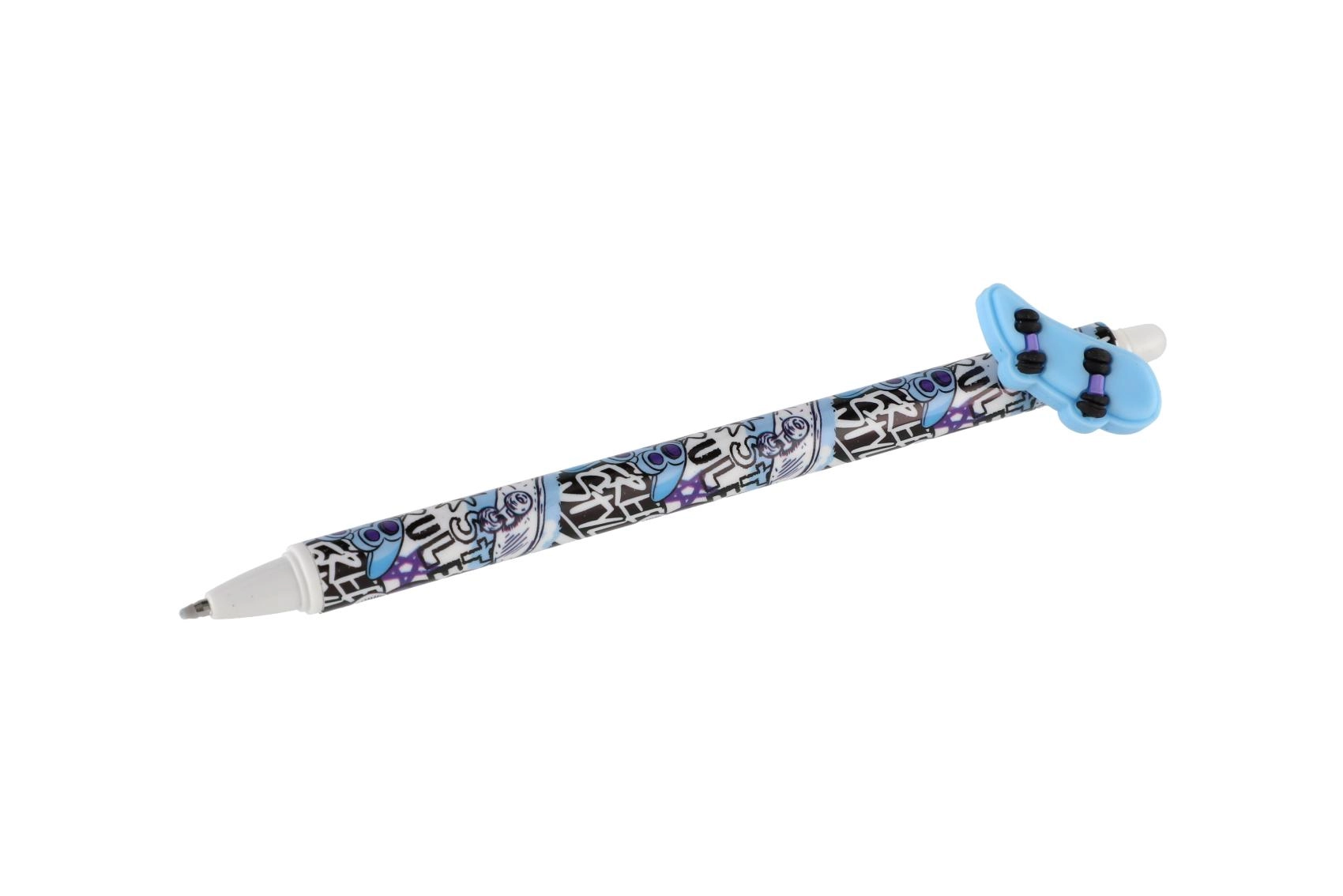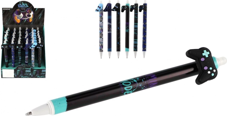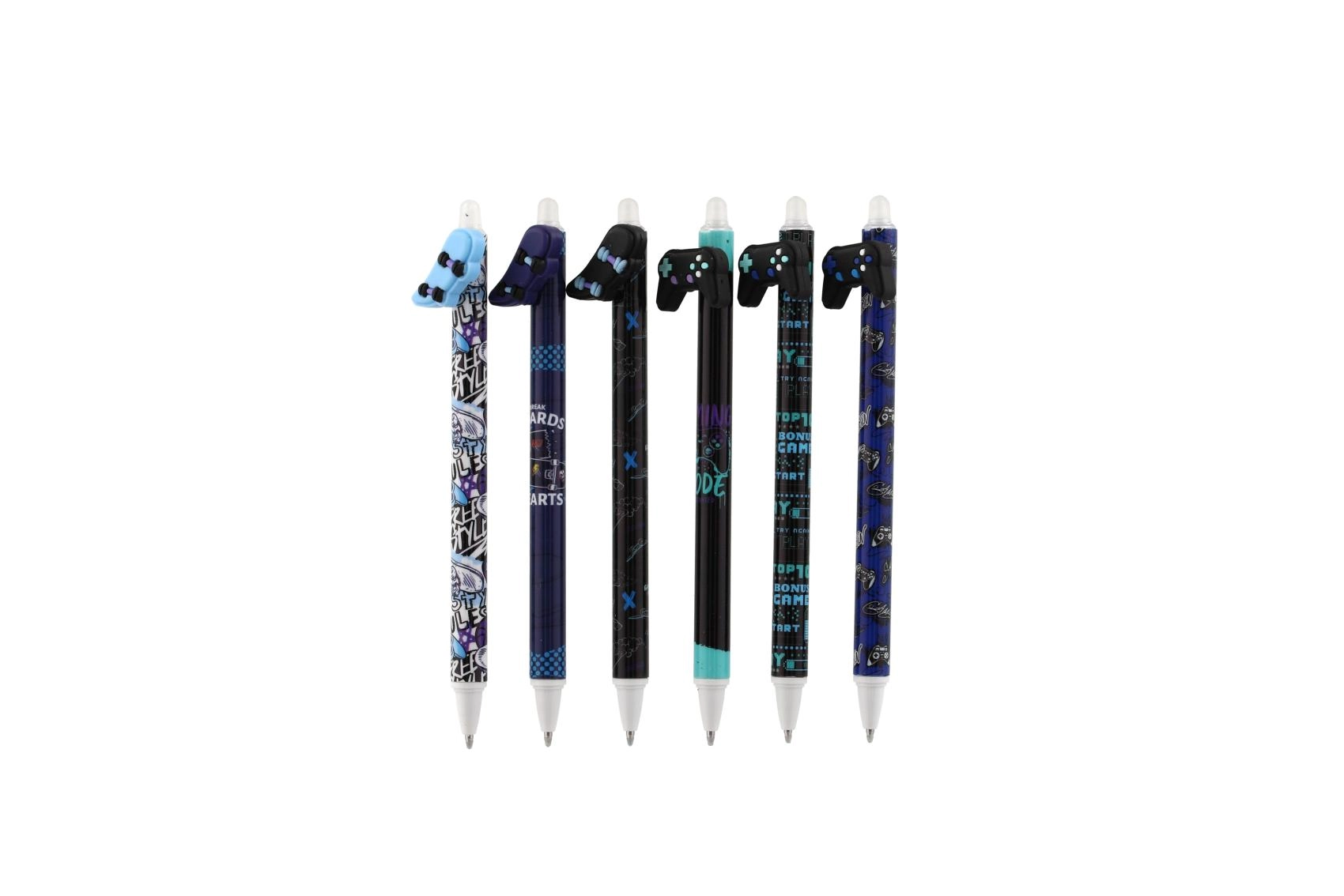 Kiekvienas rašiklis turi originalų topperį žaidimų pulto, riedlentės, varlytės ar sparnų formos ir yra papuoštas moderniais juodos bei mėlynos paletės atspaudais. Dėl trinamo rašalo lengvai pataisysi smulkias klaidas be dėmių.