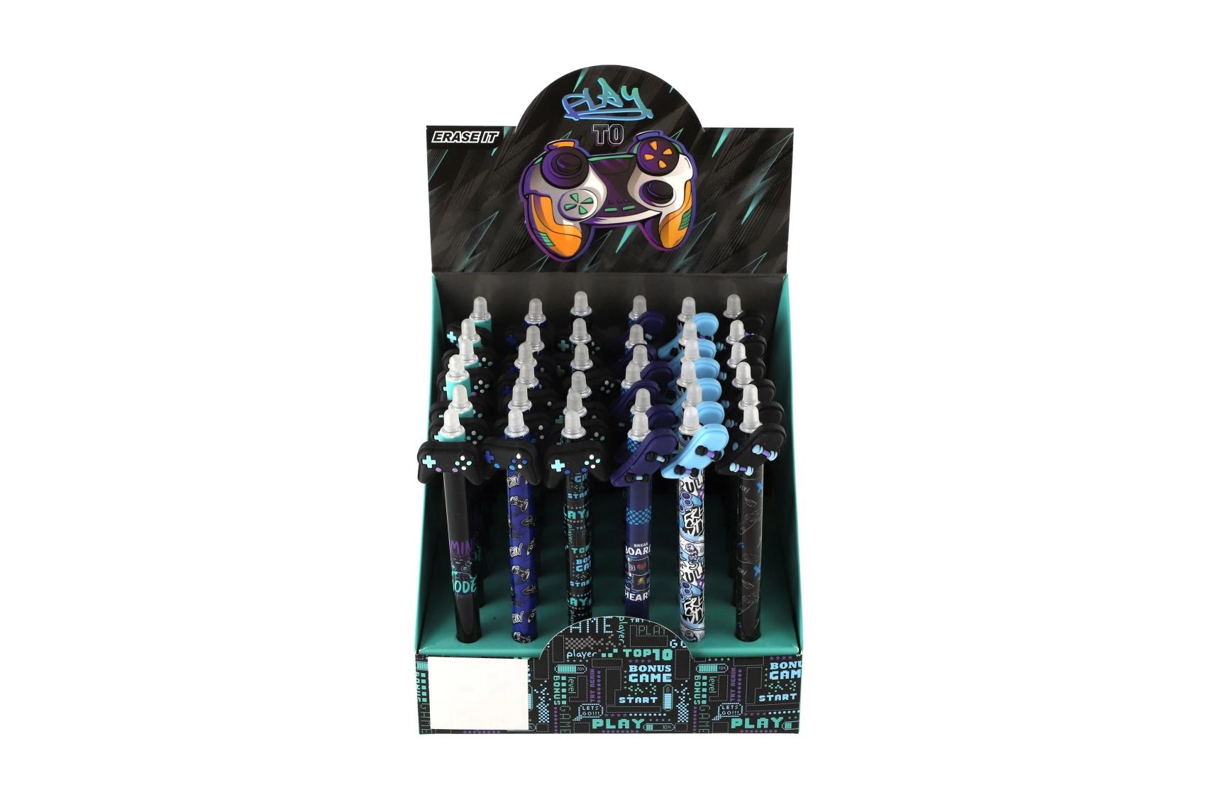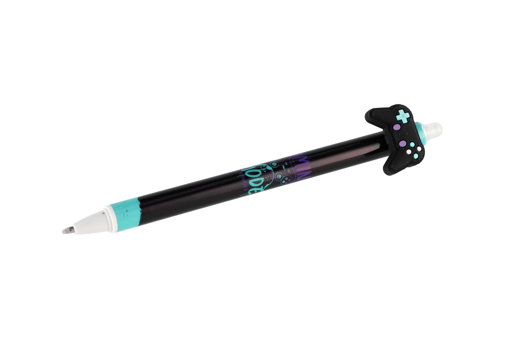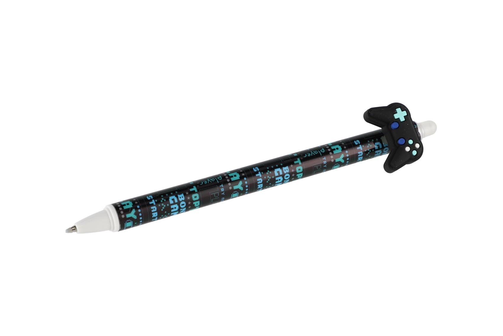 Kiekvienas rašiklis turi originalų topperį žaidimų pulto, riedlentės, varlytės ar sparnų formos ir yra papuoštas moderniais juodos bei mėlynos paletės atspaudais. Dėl trinamo rašalo lengvai pataisysi smulkias klaidas be dėmių.