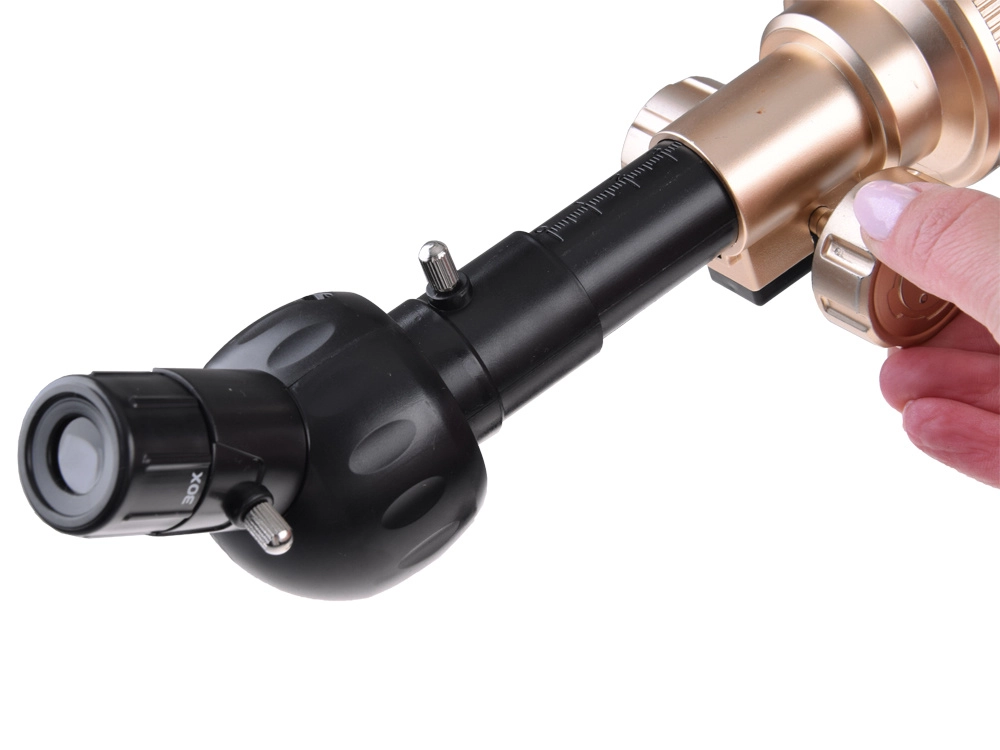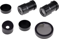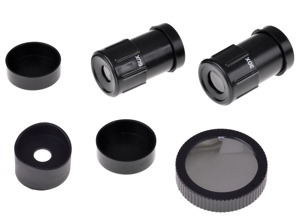 - Zenitinis veidrodėlis, membraninis filtras (saugiems Saulės stebėjimams), taikiklis, telefono laikiklis, priedų lėkštelė, okuliaro dangtelis