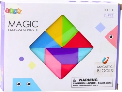 Magnetinės tangramo kaladėlės – išmani mokymosi per žaidimą priemonė. Devynias tvirtas ir ryškias dalis galima dėl galingų magnetų stabiliai jungti į įvairias formas, gyvūnėlius ar personažus. Taip vaikai natūraliai stiprina koncentraciją, akių ir rankų koordinaciją bei kantrybę.
