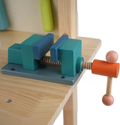 Vaikiškas medinis dirbtuvių stalas KRUZZEL suteikia pilną meistravimo stotį mažiesiems varžtų meistrams. Stalas su integruotu spaustuvu, liniuotės žymėjimu ir iš anksto išgręžtomis skylėmis leidžia „tikrai dirbti“ saugioje aplinkoje. Natūralios, netoksiškos medžiagos ir suapvalintos briaunos užtikrina saugų žaidimą, o stabili konstrukcija atlaiko kasdienius nuotykius.