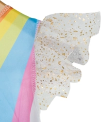 Magiškas rinkinys mažosioms fantazijos gerbėjoms turi viską, ko reikia akimirksniu transformacijai – blizgantį sijonėlį su žvaigždutėmis, auksinius sparnus su gumelėmis ir lankelį su ausimis, karčia ir ragu. Dėl paprasto vilkėjimo per galvą ir elastingų elementų kostiumas greitai paruoštas linksmybėms be sudėtingo užsegimo.