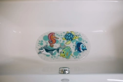 Montavimas paprastas: tobulam prilipimui pripildykite vonią vandens, kilimėlį padėkite ant dugno ir tolygiai prispauskite. Dėl universalių 69 × 39 cm matmenų tinka daugumai vonių ir vaikiškų vonelių.