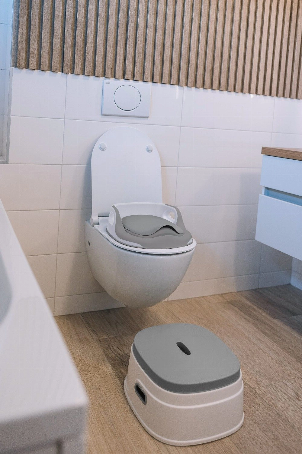 - 3 in 1 sprendimas: puodukas, WC adapteris, laiptelis