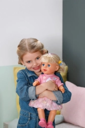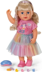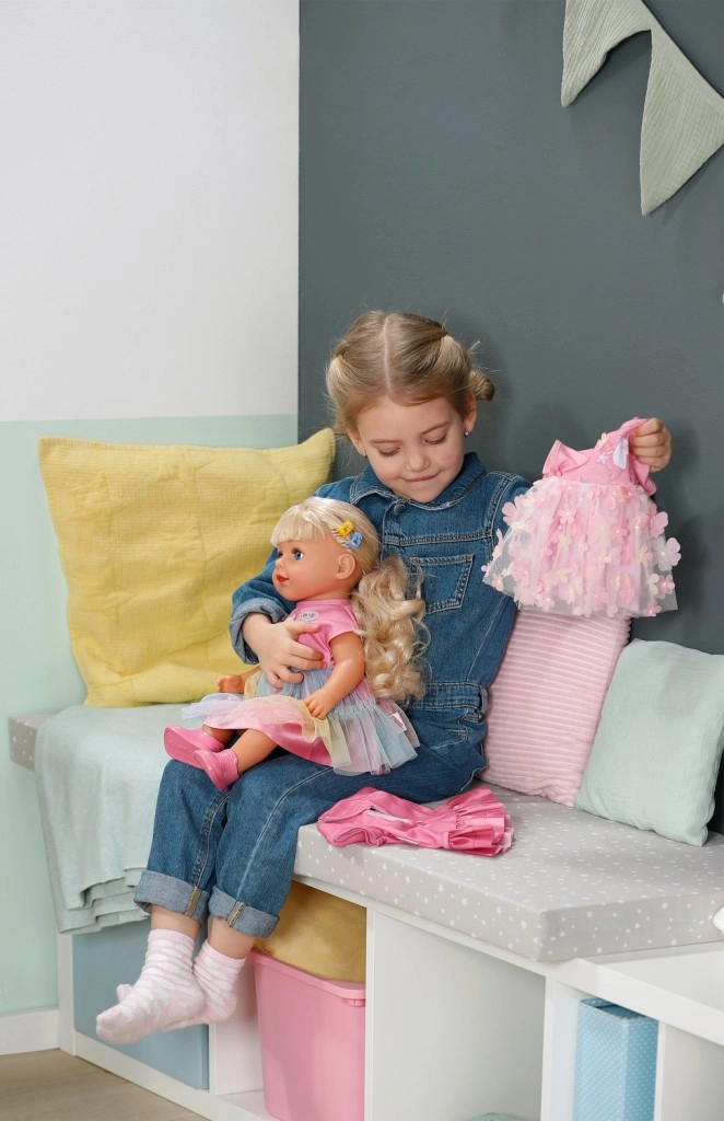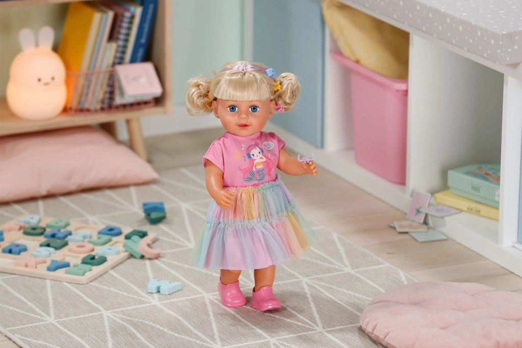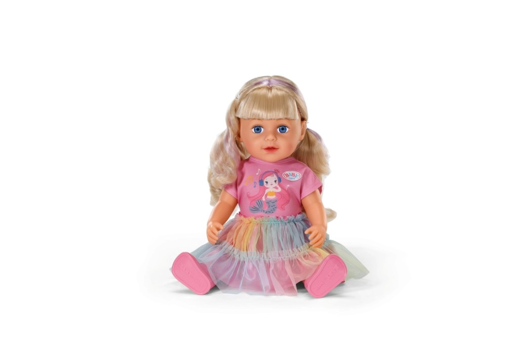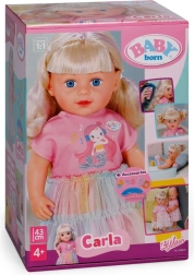 Atraskite lėlę BABY born Carla 43 cm su ilgais kokybiškais nailoniniais plaukais, kurie puikiai šukuojasi. Rinkinyje yra 7 plaukų formavimo aksesuarai, lėlė turi judrius sąnarius, stovi savarankiškai, o dėl tvirto korpuso gali maudytis vonioje. Stilių papildo mielas marškinėlis, vaivorykštinis tiulio sijonas ir rožiniai bateliai – tobula kūrybiškam žaidimui ir plaukų formavimui.