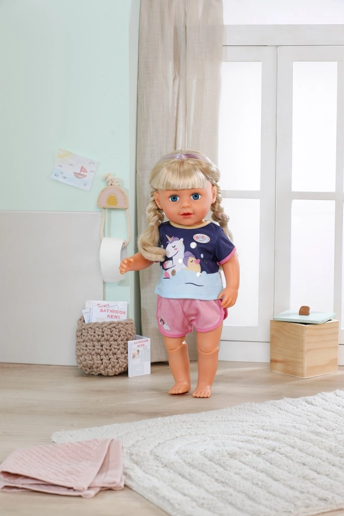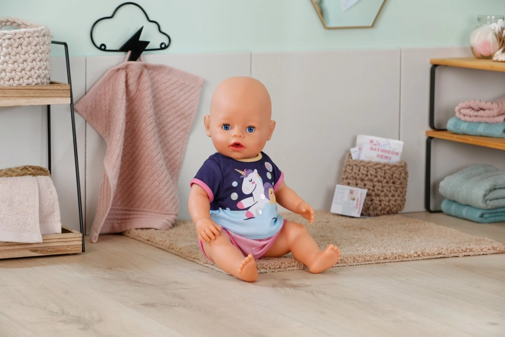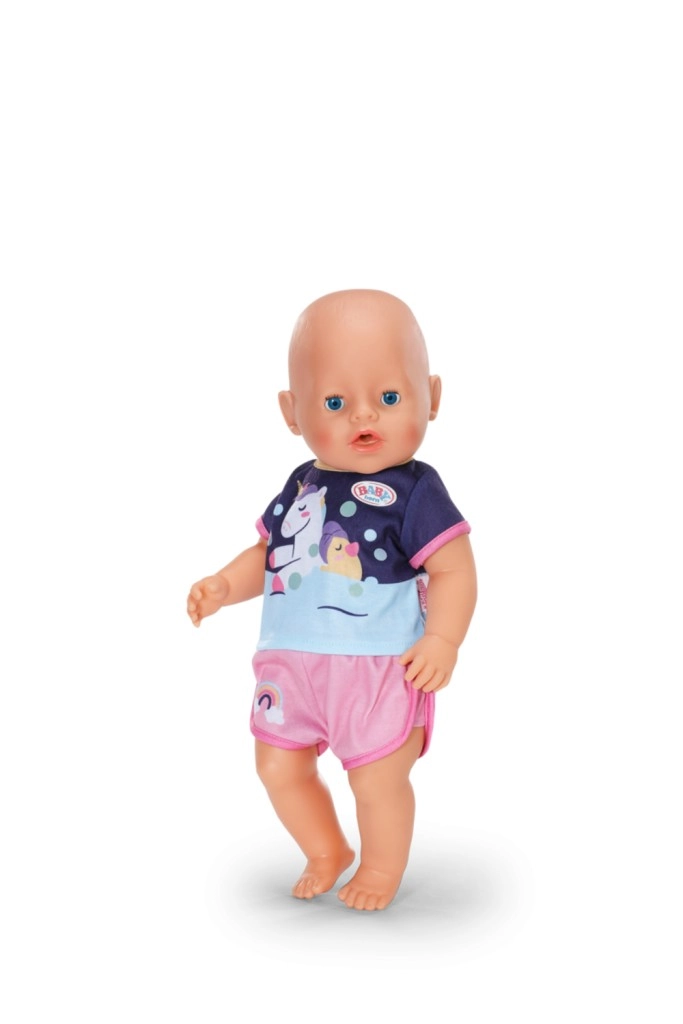 Mielas dviejų dalių BABY born pižamos komplektas 43 cm dydžio lėlėms pavers kiekvieną užmigimą magišku ritualu. Minkšta medžiaga ir Easy Fit kirpimas užtikrina, kad rūbelį lengva aprengti ir nurengti, skatina persirengimo žaidimus ir lavina vaikų vaizduotę bei rūpinimosi įgūdžius. Stilingas vienaragio motyvas ir linksmos spalvos daro pižamą mėgstamu vakaro jaukumo drabužėliu. Tinka vaikams nuo 3 metų.