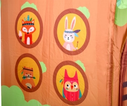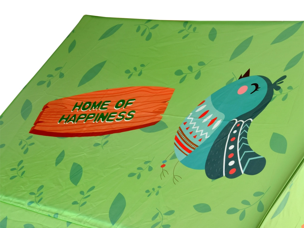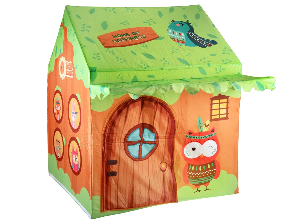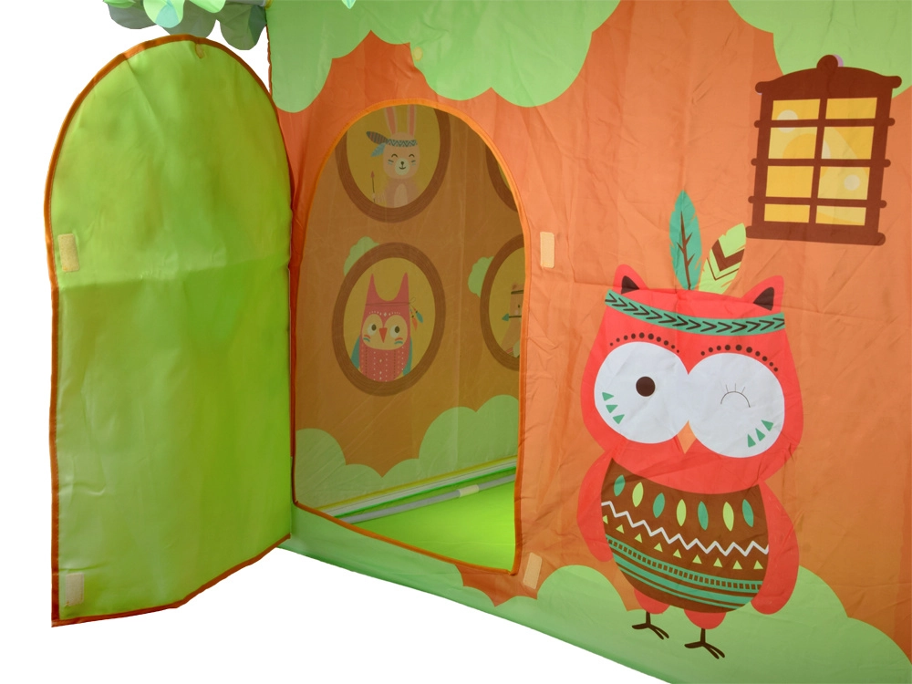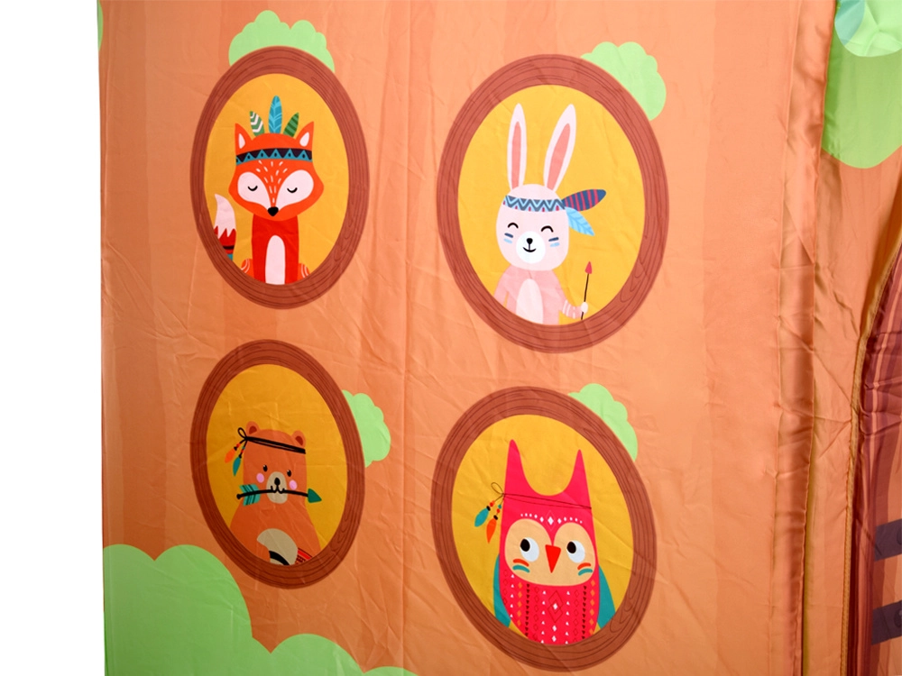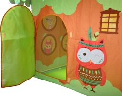 Namelio palapinė Miško draugai sužavės vaikus linksma grafika su pelėda ir paukšteliais ir sukurs jaukią vietą žaidimams, skaitymui ar poilsiui. Dėl mažo svorio ir greito surinkimo tinka vaikų kambariui ir sodui. Įėjimas ir langai užtikrina gerą priėjimą ir oro cirkuliaciją.