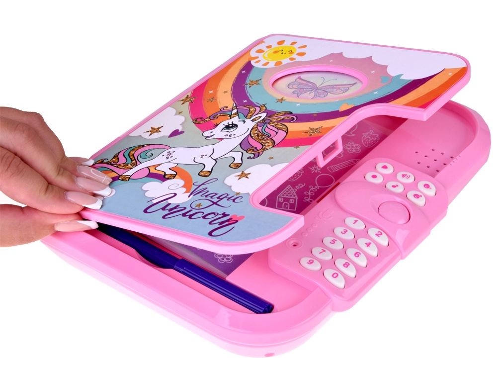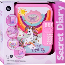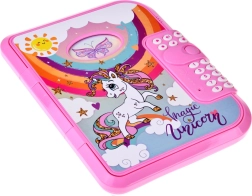 Atraskite savo paslapčių magiją su interaktyviu vienaragio motyvo dienoraščiu. Dėl keturženklio kodo visi įrašai ir smulkmenos yra saugiai apsaugoti. Dienoraštis siūlo 6 funkcinius mygtukus, balso įrašymą ir atkūrimą, balso keitimą ir 10 įmontuotų melodijų. Komplekte yra rožinis bloknotas, flomasteris ir slapta dėtuvė lobiams.