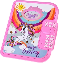 Interaktyvus vienaragio motyvo dienoraštis – tai svajonių vieta visoms vaikiškoms mintims, piešiniams ir paslaptims. Įvedus teisingą kodą, dienoraštis atsiveria ir atskleidžia rožinį sąsiuvinį, rašymo flomasterį ir slaptą dėžutę smulkiems lobiams. Priekinį rėmelį galima pritaikyti keičiamu paveikslėliu.