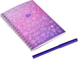 - Praktiški priedai: rožinis užrašų knygelė, flomasteris, permatomas rėmelis ir keičiamas dizainas.