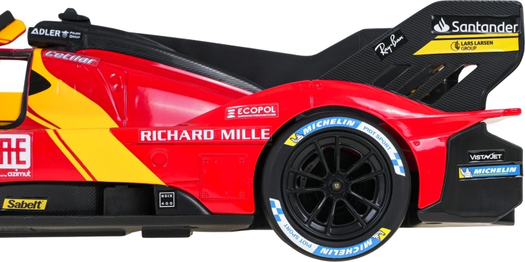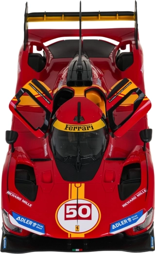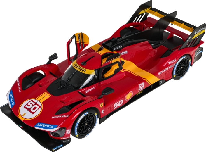 Tapkite supersporto vairuotoju ir užkariaukite trasą su FERRARI 499P modeliu. Tikslios proporcijos, lenktyniniai lipdukai ir būdingi geltoni akcentai pabrėžia autentišką išvaizdą. Nuotolinis valdymas, įkvėptas Ferrari vairo, užtikrina tikslų manevravimą namuose ir lauke.
