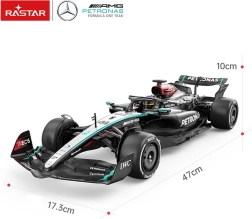 Autentiškas ir greitas RC modelis MERCEDES-AMG F1 W15 E PERFORMANCE masteliu 1:12 iš RASTAR džiugina detaliu atlikimu, tiksliai valdomu vairavimu ir patvaria ABS plastiko konstrukcija. Dėl 2,4 GHz technologijos siūlo sklandų valdymą be trukdžių, o guminiai ratai ir nepriklausomi amortizatoriai užtikrina puikų sukibimą ir stabilumą.
