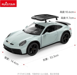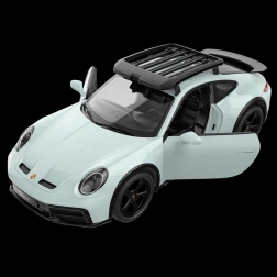 Šis licencijuotas modelis PORSCHE 911 Dakar elegantiškos mėtų spalvos pagamintas iš kokybiško ABS plastiko ir aukštos klasės mechaninių bei elektroninių komponentų. Ištikimai atkartoja tikrą prototipą ir išsiskiria greitu, tiksliu važiavimu bei detaliai išbaigtu interjeru.