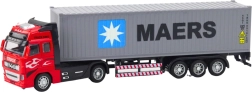 Realistiškas konteinerinis sunkvežimis su atgal traukimo pavara pradžiugins visus mažus technikos gerbėjus. Jis derina metalo elementus ir patvarų plastiką ilgaamžiškumui, turi atidaromas duris, didelį nuimamas konteinerį ir guminiais pasukamais ratais užtikrina sklandų važiavimą.
