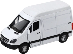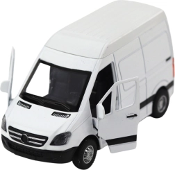 Realistiška metalinė 1:32 mastelio furgono miniatiūra pradžiugins ir mažuosius, ir suaugusius gerbėjus. Ji turi atgalinę trauką (pull back), atidaromas duris ir šviesos bei garso efektus. Kokybiškas metalo ir plastiko derinys užtikrina patvarumą, o baltas minimalistinis dizainas tiks bet kuriai modelių kolekcijai.