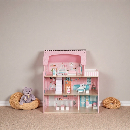 Komplekte yra pilna baldų įranga, todėl vaikai gali iš karto įrengti kambarius ir lavinti vaizduotę. Gaminy s atitinka Europos standartus ir pagamintas iš ekologiškos medienos, todėl tai atsakingas pasirinkimas šeimai ir planetai.