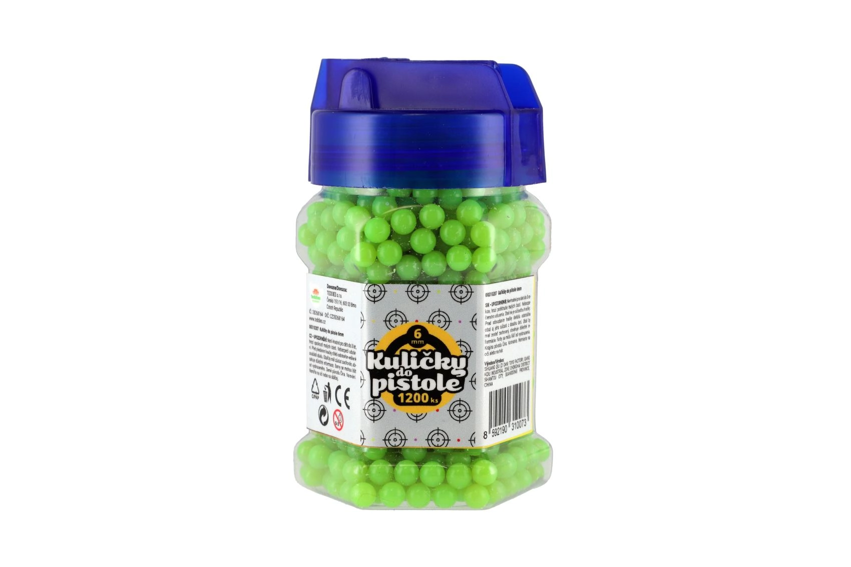 Papildykite žaislinių pistoletų šaudmenų atsargas 6 mm plastikiniais kamuoliukais. Dėl lengvos konstrukcijos kamuoliukai puikiai tinka taiklumo treniruotėms ir linksmoms varžyboms šaudant į taikinį. Patogus buteliukas su dangteliu leidžia patogiai papildyti ir saugiai laikyti.