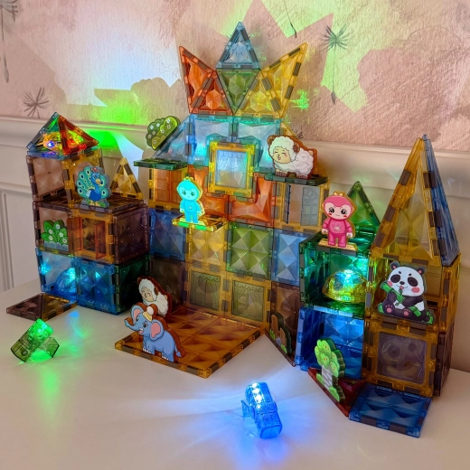 Magnetinė Woopie 3D Gyvūnų pasaulis rinkinio versija suteikia 124 dalis begaliniam statymui – nuo aptvarų ir ganyklų iki ištisų gyvūnų karalysčių. Šviečiantys komponentai suteikia kiekvienam modeliui įspūdingą efektą ir paverčia žaidimą vakariniais nuotykiais. Stiprūs magnetai užtikrina stabilumą ir lengvą jungimą net mažesniems vaikams.