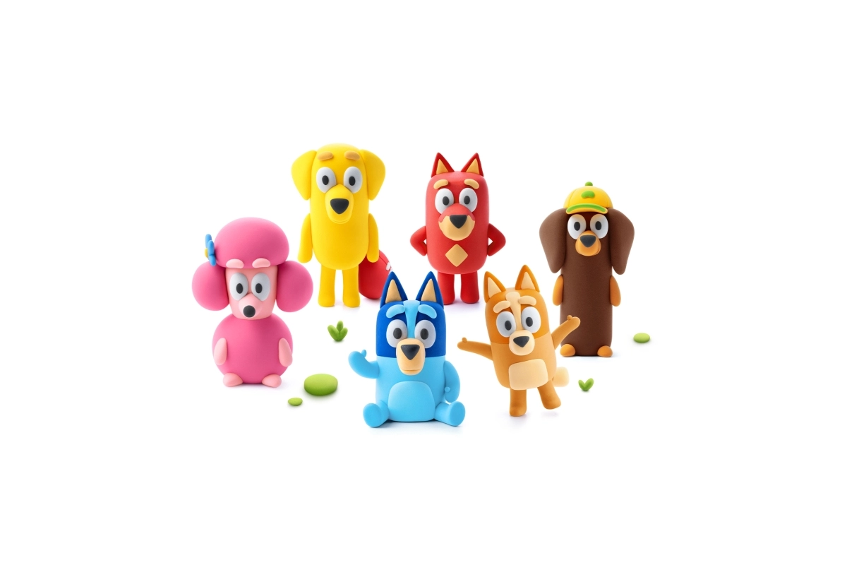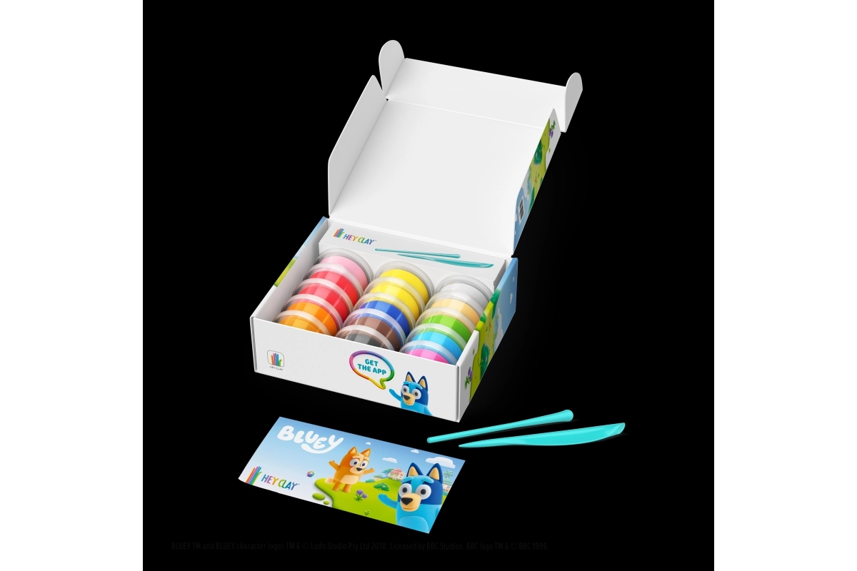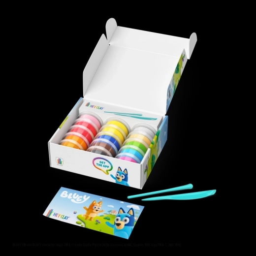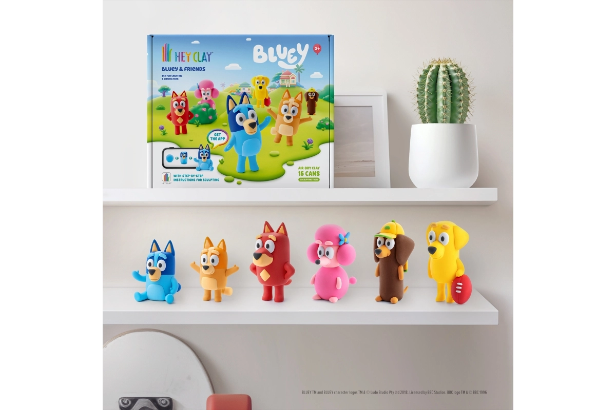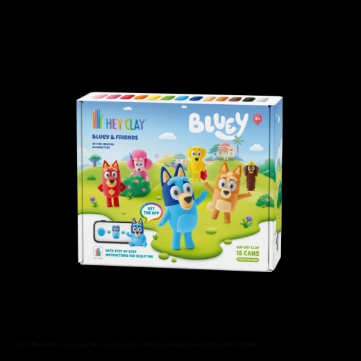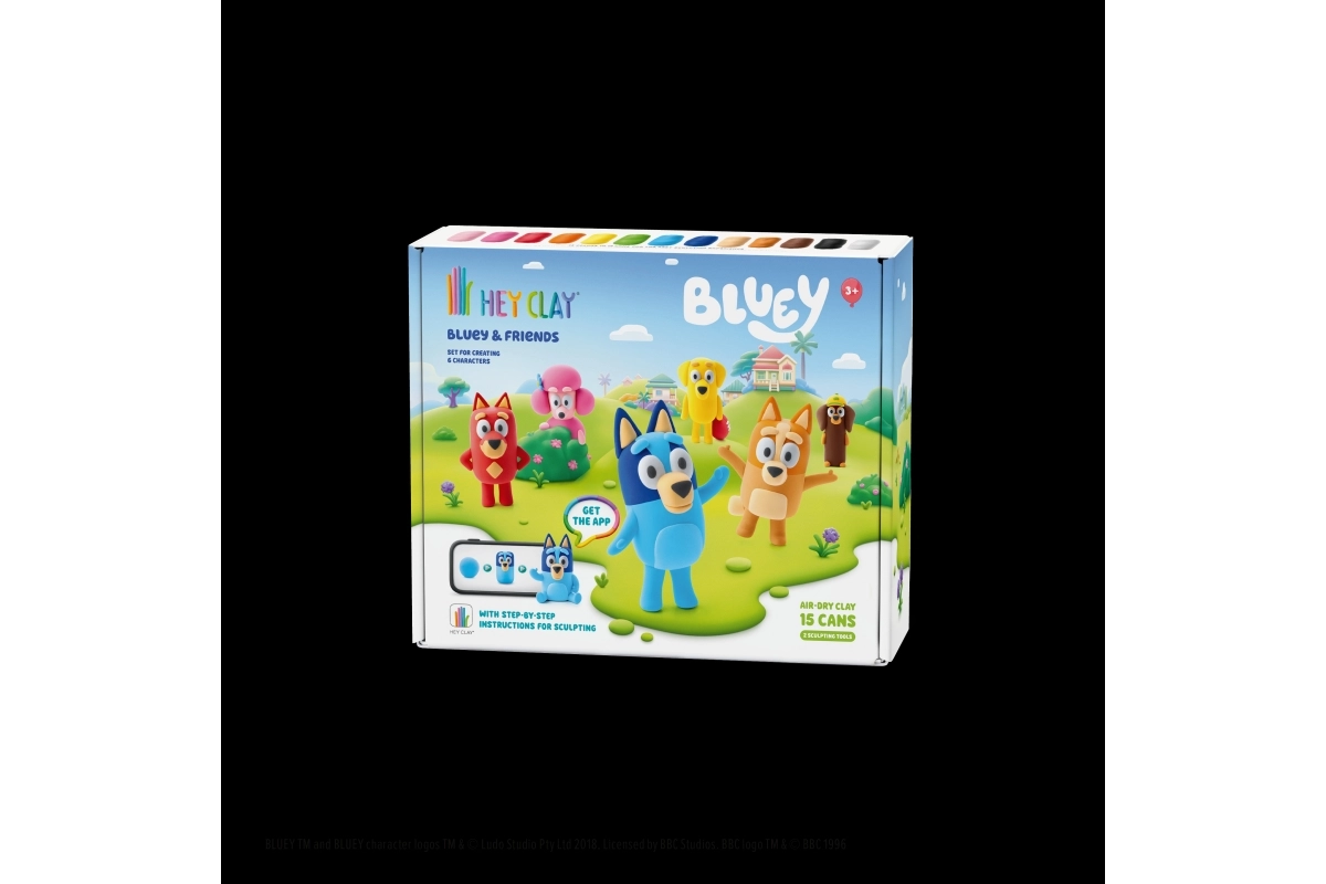 HEY CLAY „Bluey ir draugai“ rinkinys vaikams siūlo linksmą kelią nuo kūrimo iki žaidimo. Dėl intuityvios programėlės su nuosekliomis instrukcijomis vaikai lengvai nulipdys visus mėgstamus BLUEY serialo personažus – nuo energingos Bluey ir džiugios Bingo iki smalsiojo Snickers. Lengva ir švelni masė lengvai formuojama, nelimpa, o išdžiūvusi figūrėlė tampa tvirta ir atspari.