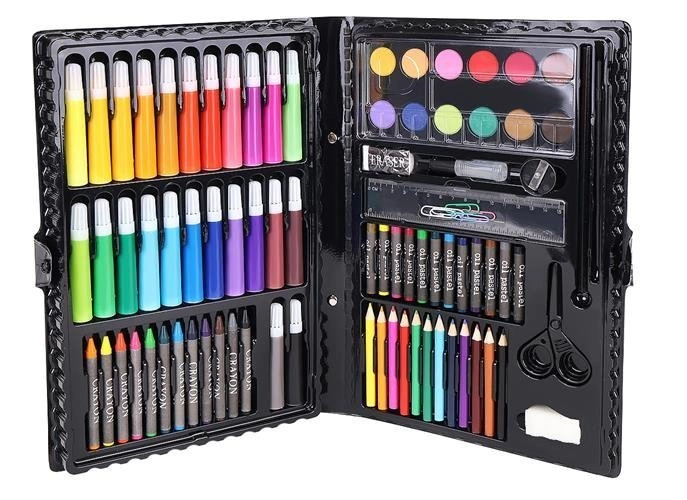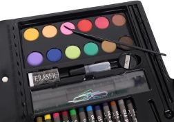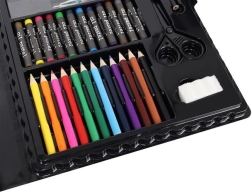 Rinkinyje iš viso yra 86 dalys, įskaitant spalvotus pieštukus, flomasterius, vaškinius ir aliejinius pastelius neribotai kūrybai.
