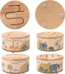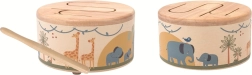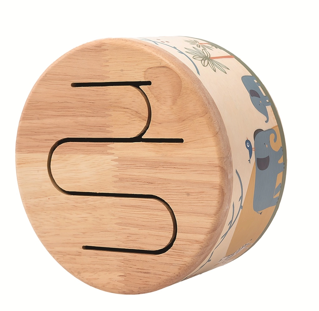 Medinis būgnelis „Safari“ sukurtas mažiesiems garsų tyrinėtojams. Glotnus apdirbimas, natūralios medžiagos ir žaismingos iliustracijos paverčia jį mėgstamu žaislu, kuris lavina klausą ir rankų–akių koordinaciją. Dėl kompaktiškų matmenų ir lengvos lazdelės juo vaikams lengva naudotis.
