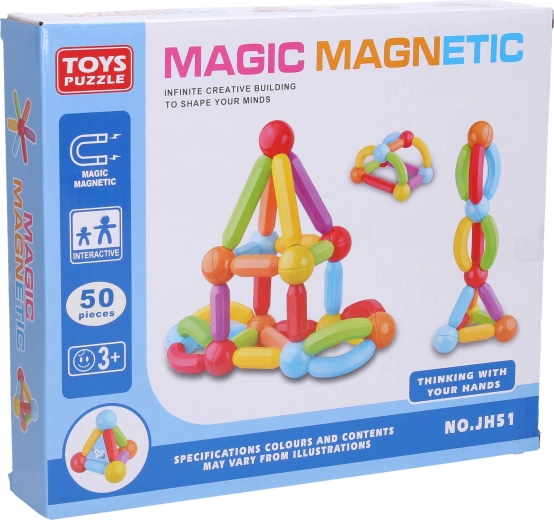 Atraskite kūrybišką pasaulį su šia universalia 50 dalių magnetine konstravimo rinktine. Lengvai jungdami detales, vaikai lavina smulkiąją motoriką, erdvinį mąstymą ir kūrybiškumą, statydami įvairiausių formų ir konstrukcijų modelius.