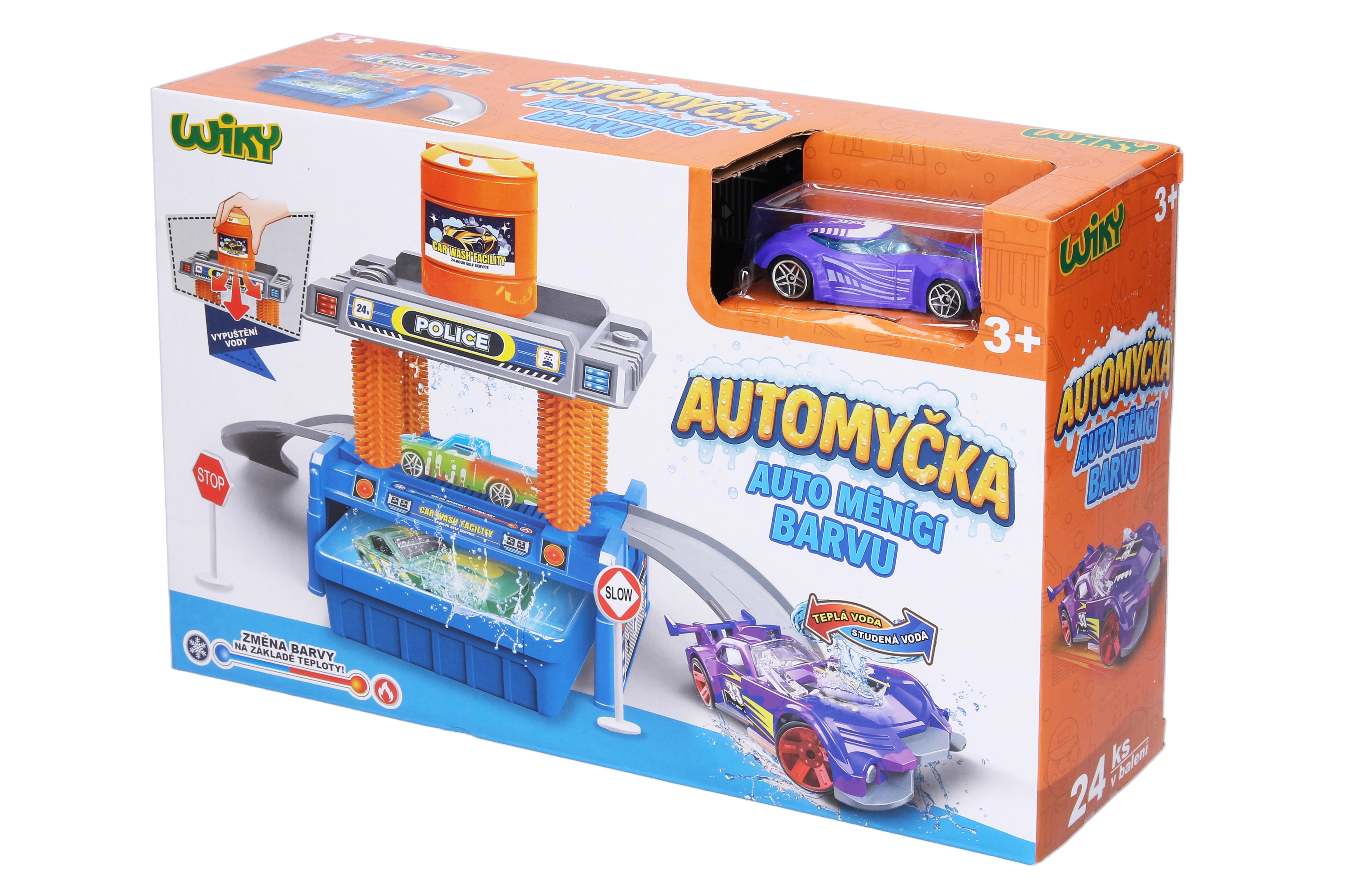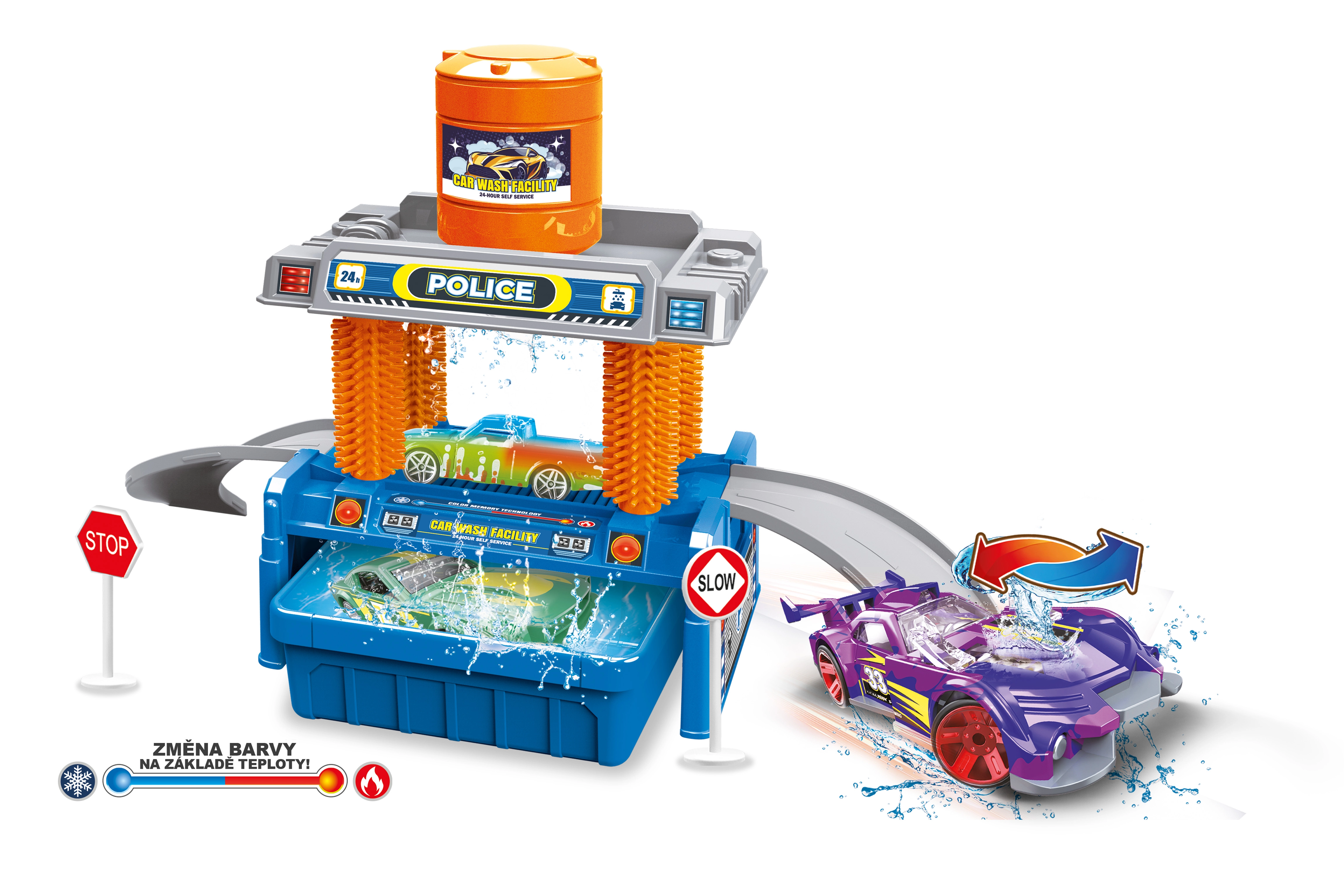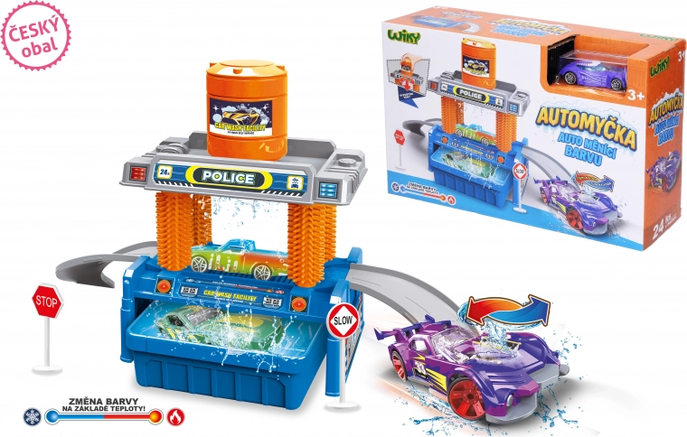 Smagus rinkinys mažiesiems vairuotojams: 35 cm ilgio automobilių plovykla su mašinėle, kuri keičia spalvą priklausomai nuo temperatūros. Tereikia naudoti šaltą arba šiltą vandenį ir stebėti magišką virsmą. Plovykla turi minkštą vandens talpą patogiam dozavimui, o mašinėlė su laisvai riedančiais ratais užtikrina sklandų važiavimą. Idealiai tinka vaizduotei ir jutiminiam suvokimui lavinti.