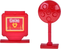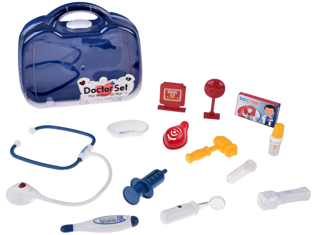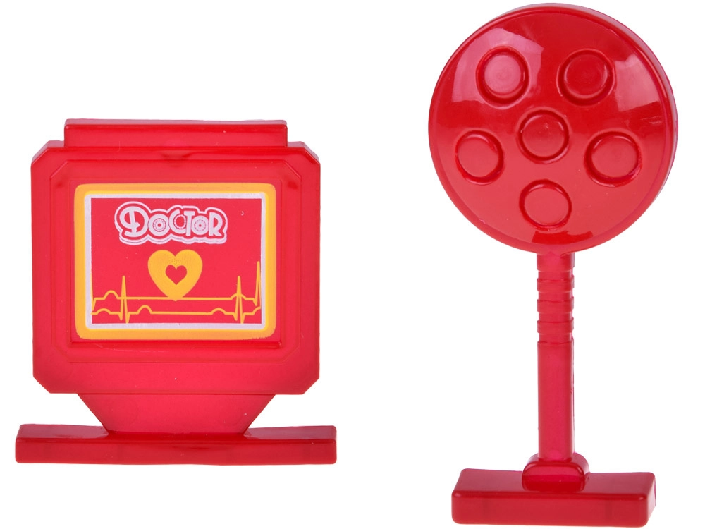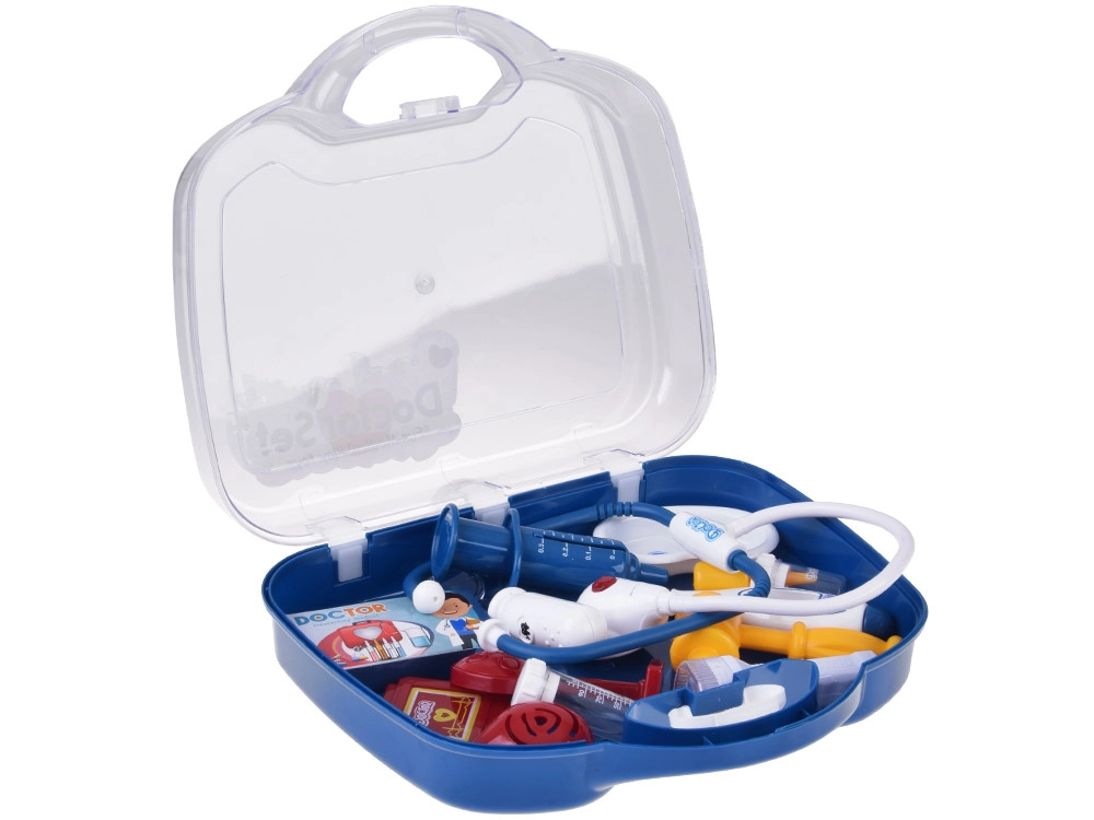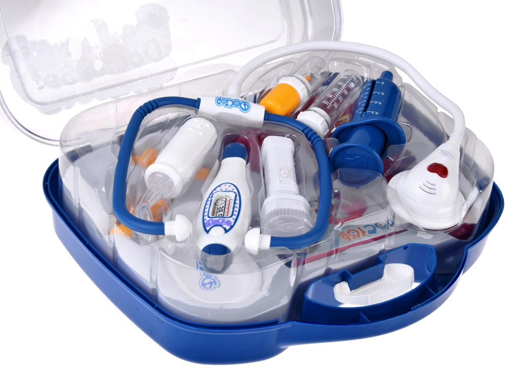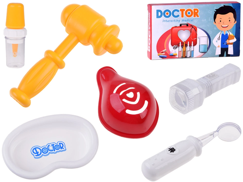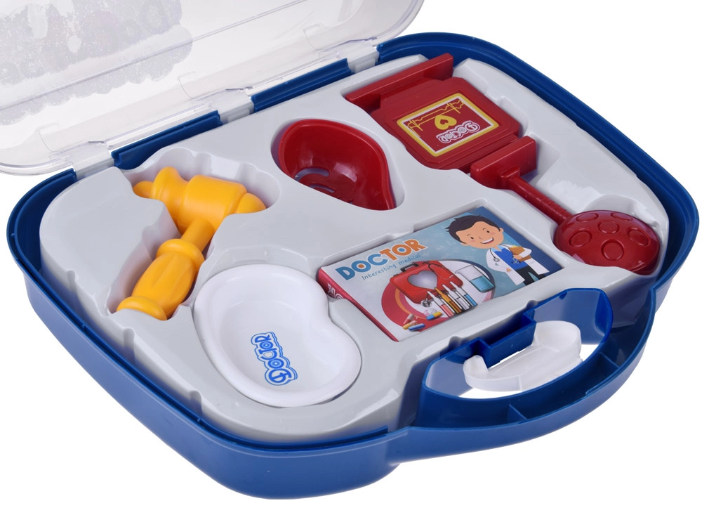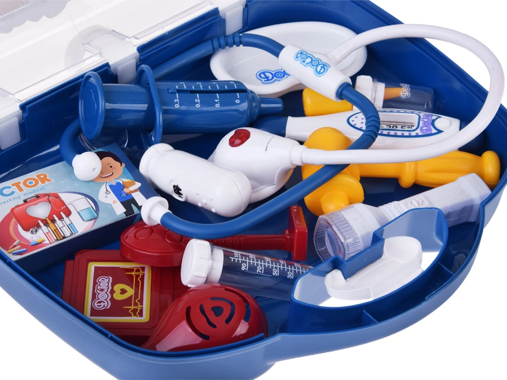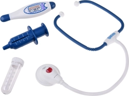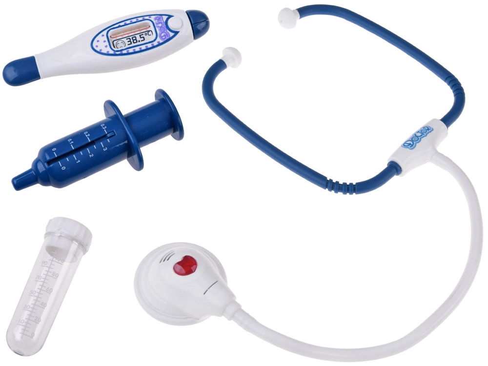 - Stetoskopas (su garsu), šviečianti lemputė, skaitmeninis termometras (su pasukamu indikatoriumi), švirkštas su judančiu stūmokliu, refleksinis plaktukas, otoskopas/lemputė, laringologinis veidrodėlis, mėgintuvėliai ir pipetė, „inksto“ formos lėkštelė, DOCTOR kortelė, „vaistų“ dėžutė, kiti smulkūs priedai