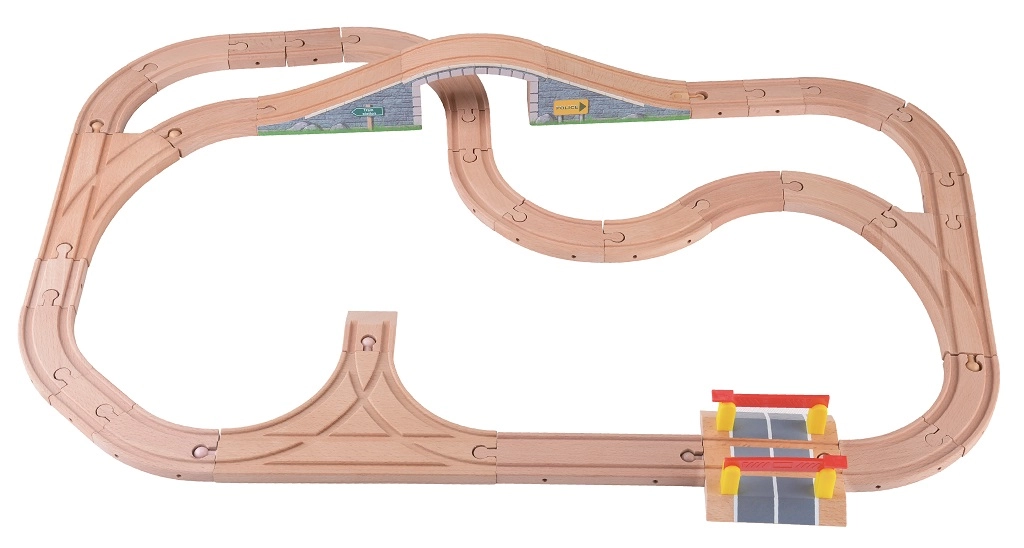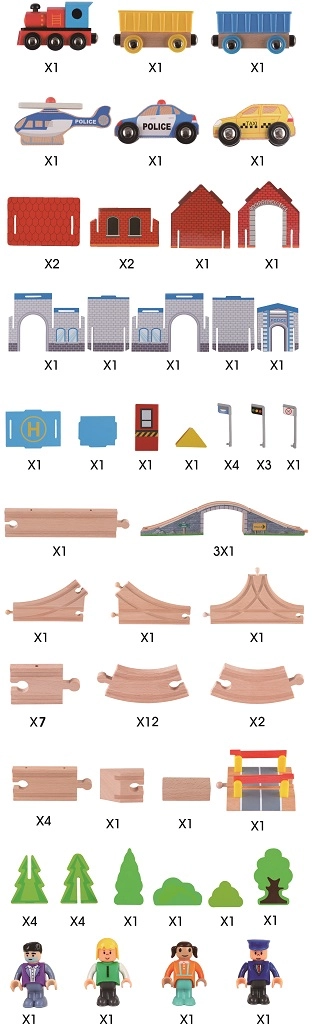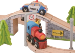 Šis detaliai apgalvotas traukinių rinkinys siūlo pilną pasaulį ant bėgių: lokomotyvą su vagonais, automobilius, figūrėles, policijos stotį, sraigtasparnių aikštelę, medžius ir kelio ženklus. Vaikai gali pakrauti krovinį, pervažiuoti pakeltą tiltą, sustoti stotyje ir saugiai kirsti pervažą su užtvarais. Kiekviena kelionė virsta nauja istorija ir lavina loginį mąstymą, akių–rankų koordinaciją bei komunikaciją žaidžiant kartu.