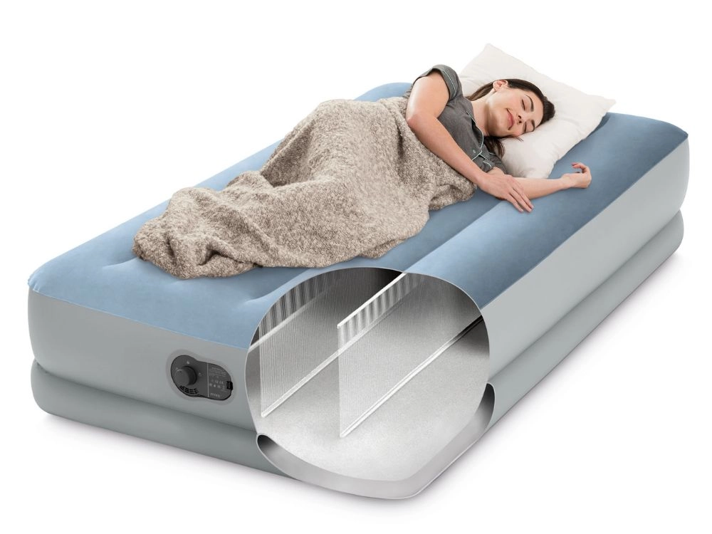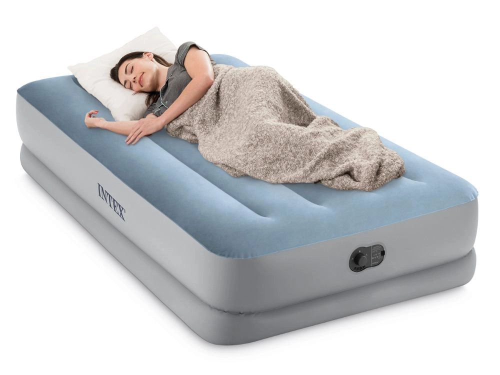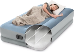 Ieškote patogaus sprendimo svečiams, kelionėms ar sodybai? Intex pripučiama čiužinio lova sujungia komfortą, stabilumą ir mobilumą. Veliūrinis paviršius malonus liesti ir neleidžia slysti paklodei, o sutvirtintos Fiber-Tech kameros ir Dura-Beam rėmas suteikia lovai tvirtumo be nemalonaus siūbavimo.