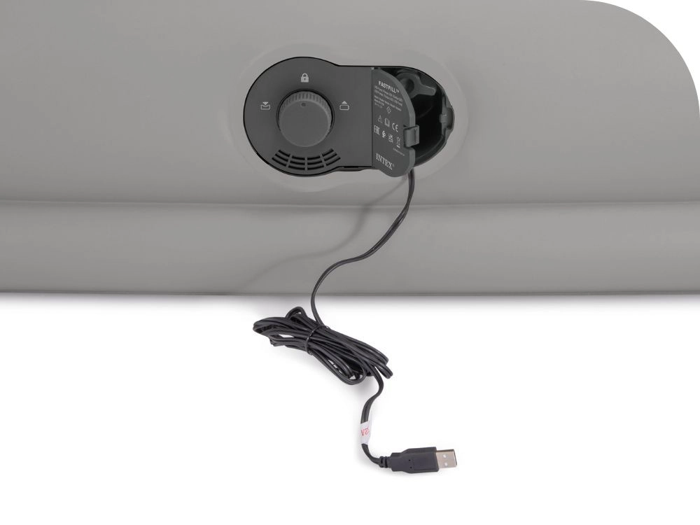 Integruotas USB siurblys 5V/2A pripučia čiužinį maždaug per 240 sekundžių. Maitinamas tiesiog iš powerbanko, telefono įkroviklio, USB lizdo arba automobilinio įkroviklio – idealu namuose ir kelionėje. AirLock sertifikatas garantuoja sandarumą ir patikimumą net dažnai naudojant.