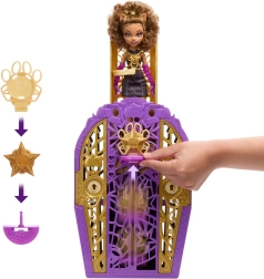 Leiskitės Clawdeen Wolf pėdsakais į Hollyducho pasaulį! Naudodami raktą su lupa atskleiskite simbolius žemėlapyje, atrakinkite puošnią spintelę ir raskite teminius priedus su atitinkančiais simboliais. Tris rastas dalis sudėkite į talismaną, pritvirtinkite jį prie spintelės pagrindo ir pastumkite aukštyn – pamatysite Clawdeen lėlę akinamame įvaizdyje. Šią magišką akimirką galite kartoti vėl ir vėl.