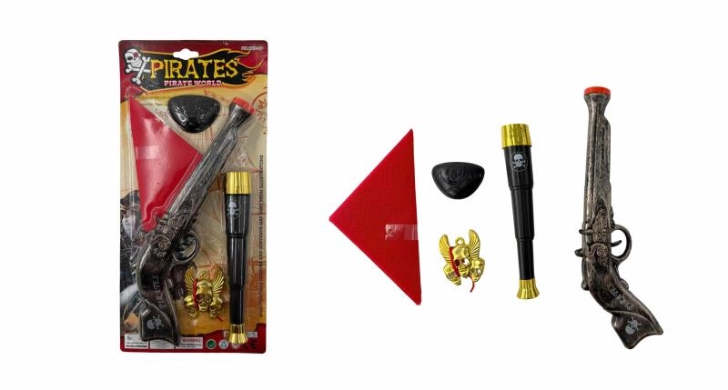 - Pistoletas, žiūronai, skarelė, piratiškas ženklelis, akių raištis