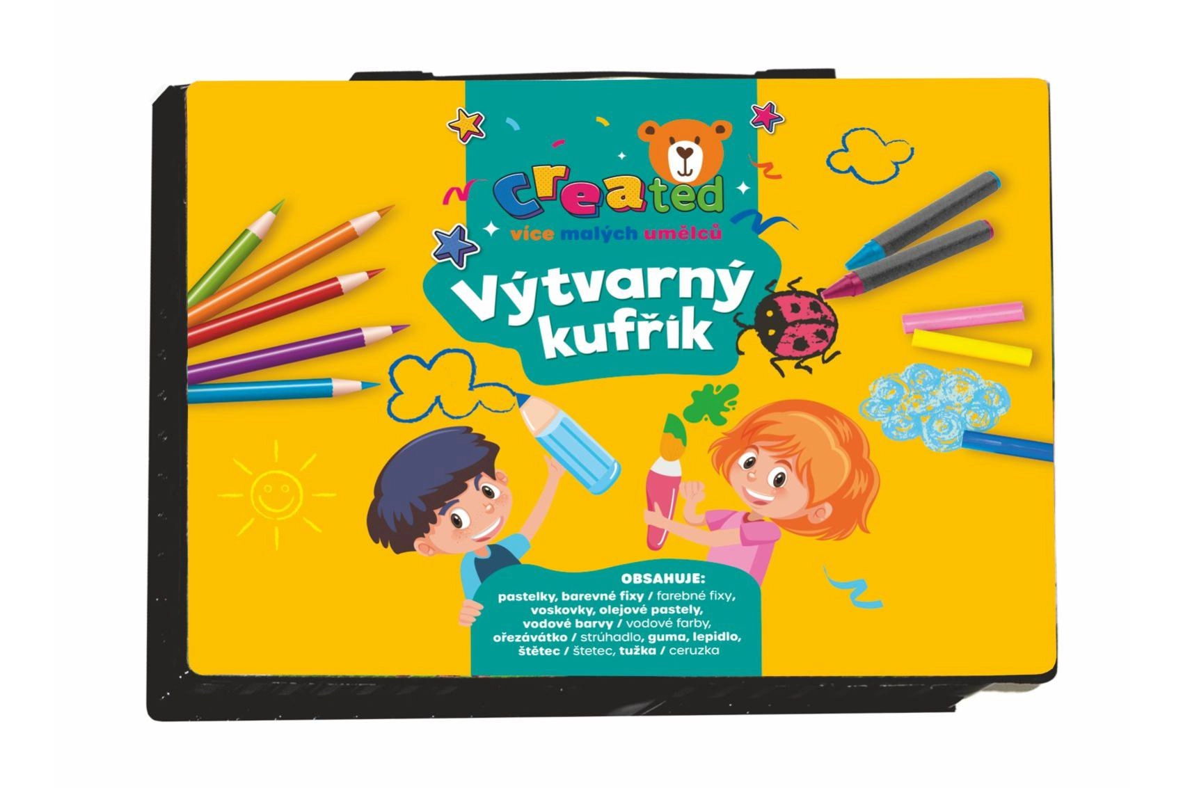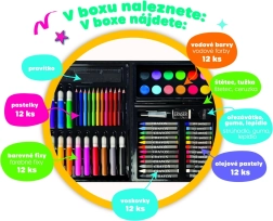 Praktiškas kūrybinis rinkinys mažiesiems menininkams tvirtame plastikiniame lagaminėlyje siūlo viską, ko reikia piešimui ir piešiniams. Idealu namuose, darželyje ir kelionėse. Sudėtyje yra įvairių priemonių, kurios lavina vaikų fantaziją ir smulkiąją motoriką, įskaitant pieštukus, flomasterius ir akvarelinius dažus.