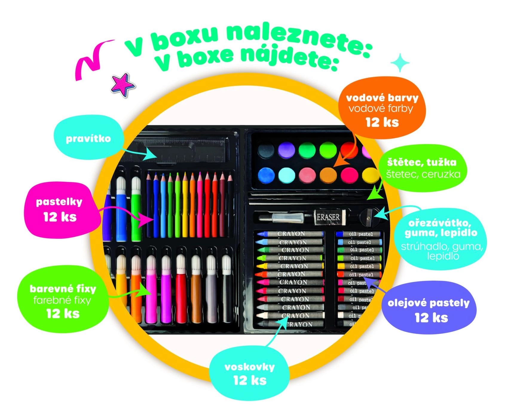 Tobula dovana vaikams, kurie mėgsta piešti ir atrasti spalvų pasaulį. Rinkinys siūlo platų kūrybos galimybių spektrą ir yra pirmasis žingsnis į meno pasaulį.