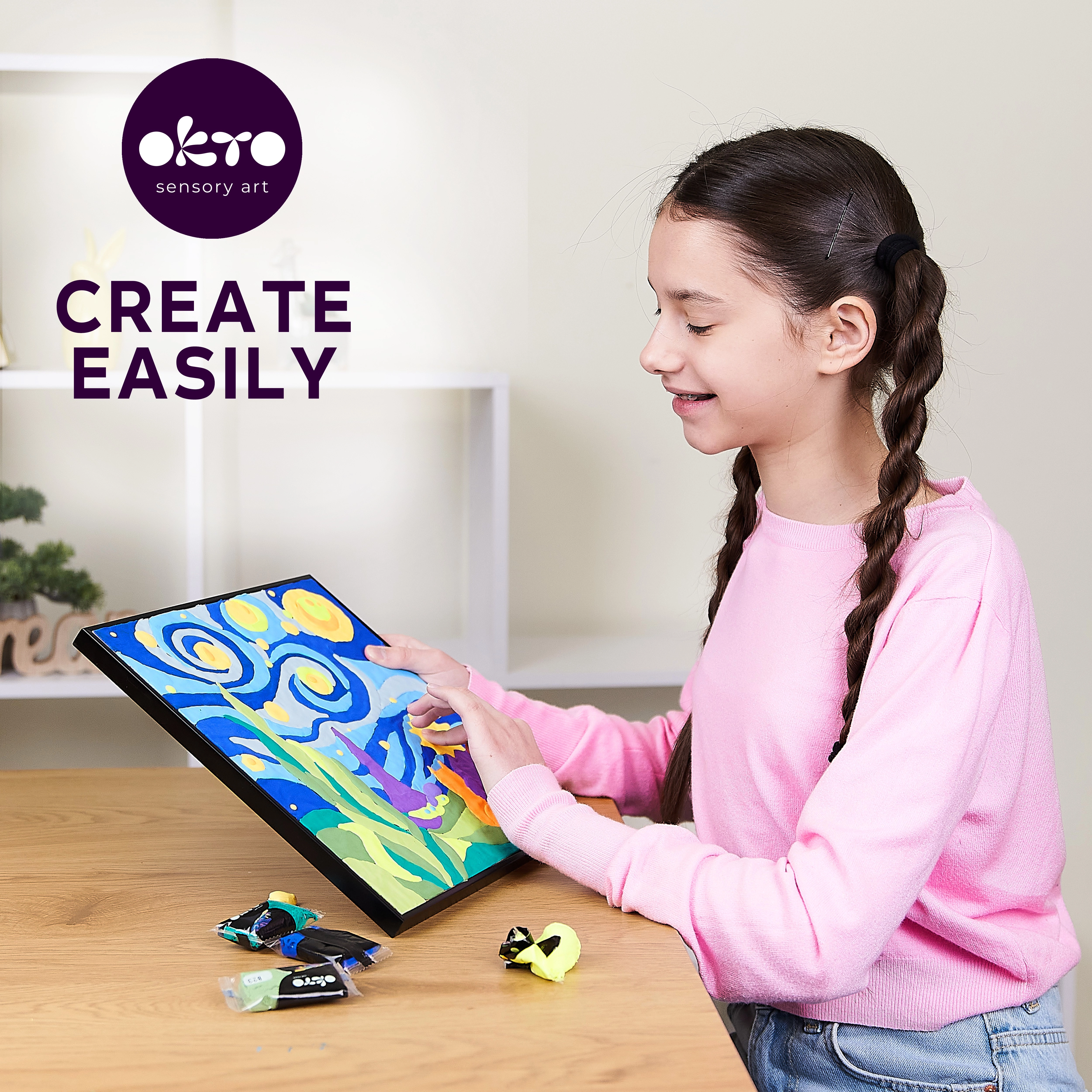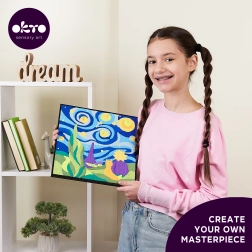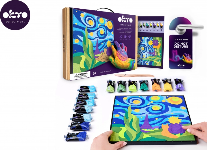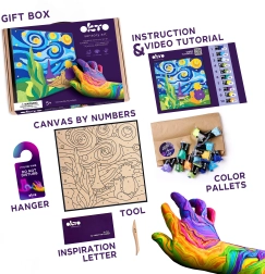 Kūrybinis rinkinys vaikams ir suaugusiesiems – sukurkite žavingą paveikslą Mažasis princas: nakties dangus naudodami formuojamą masę ir skaitinį vedimą. Paprasta, smagu ir atpalaiduojanti kūryba ant drobės, kurios matmenys 29 × 29 cm, su visu rinkinyje esančiu priedų komplektu.
