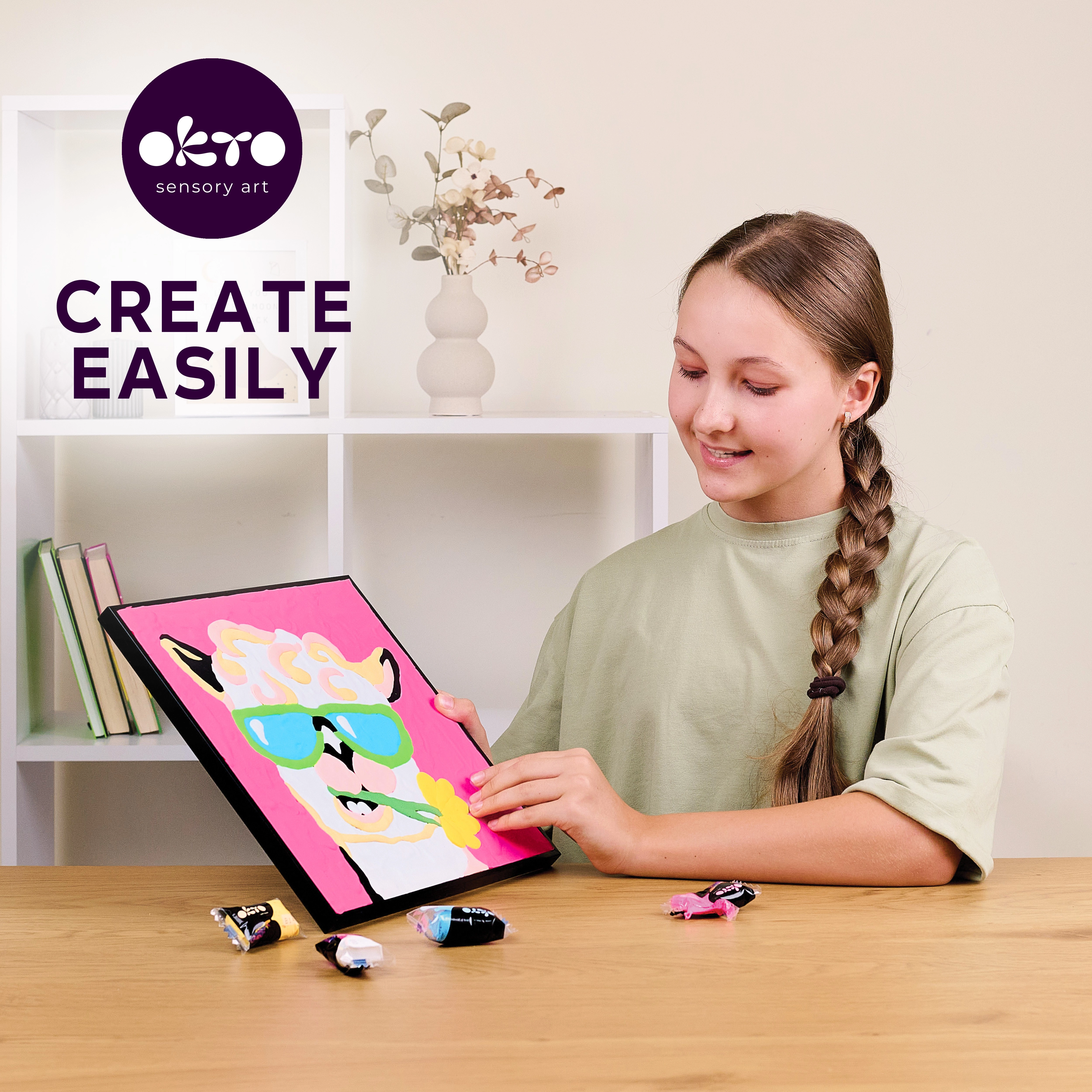 Atraskite smagų kūrybos būdą su plastine modeliavimo mase, kuri suteikia paveikslui išskirtinę tekstūrą. Dėl skaičių lengvai žengsite žingsnis po žingsnio ir pasieksite puikų rezultatą net be ankstesnės patirties. Mielos lamos motyvas tinka vaikų kambariui arba kaip originali dovana.
