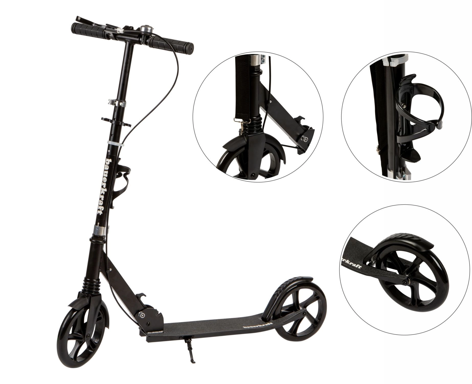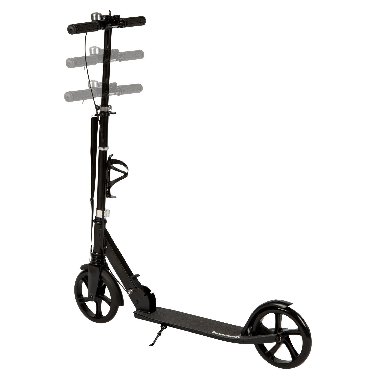 Miesto sulankstomas paspirtukas vaikams ir paaugliams su reguliuojamu aukščiu ir dideliais ratais – juoda