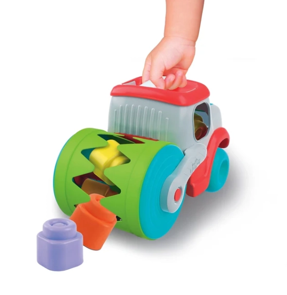 Sauga ir praktiškumas: minkštutės Clemmy kaladėlės yra saugios, švelnios ir plaunamos, idealiai tinka patiems mažiausiems. Vaikai gali „šerti“ cilindrą kaladėlėmis, mesti jas pro langelį arba išimti iš galinės dėtuvės ir vėl bei vėl atrasti priežasties–pasekmės ryšį.