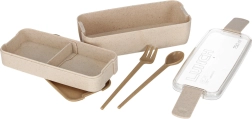 - apatinis indas, viršutinis indas, tarpinis dangtelis/pertvara tarp aukštų, slankiojanti pertvara, dangtelis su silikoniniu sandarinimu ir dviem užsegimais, 1× šakutė, 1× šaukštelis