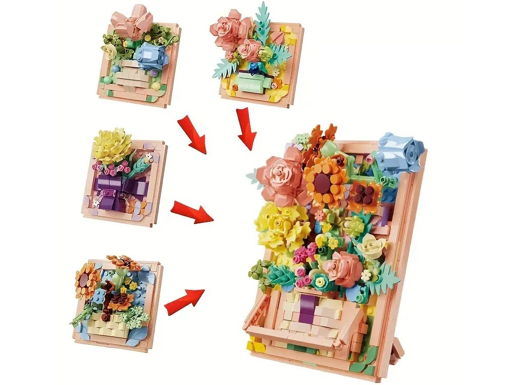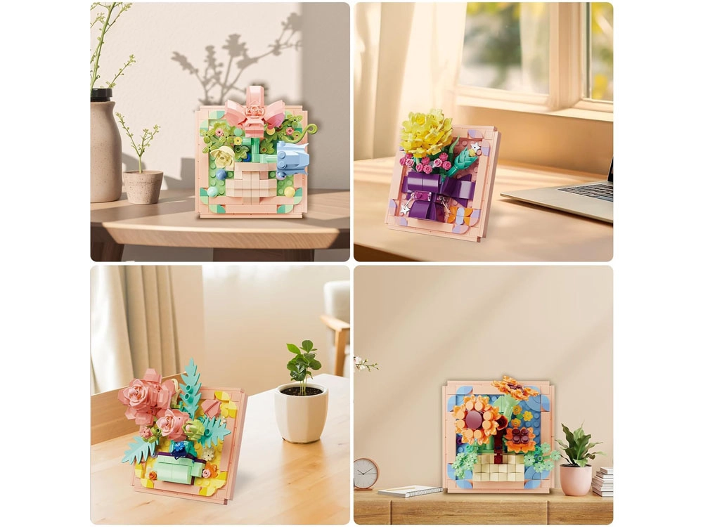 Sukurkite savo gėlių meną iš daugiau nei 200 statybinių detalių ir paverskite namus žydinčia galerija. Kiekviename rinkinyje yra 3D gėlių kompozicija rėmelyje, ryškios spalvos, stabili konstrukcija ir dekoratyvus eksponavimas ant lentynos ar sienos. Idealu kūrybiškam poilsiui, bendram kūrimui ir ilgalaikei dekoracijai, kuri niekada nenuvys.