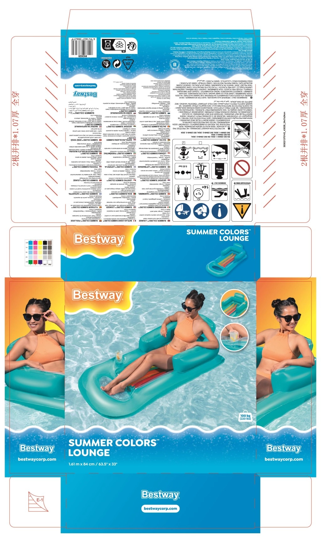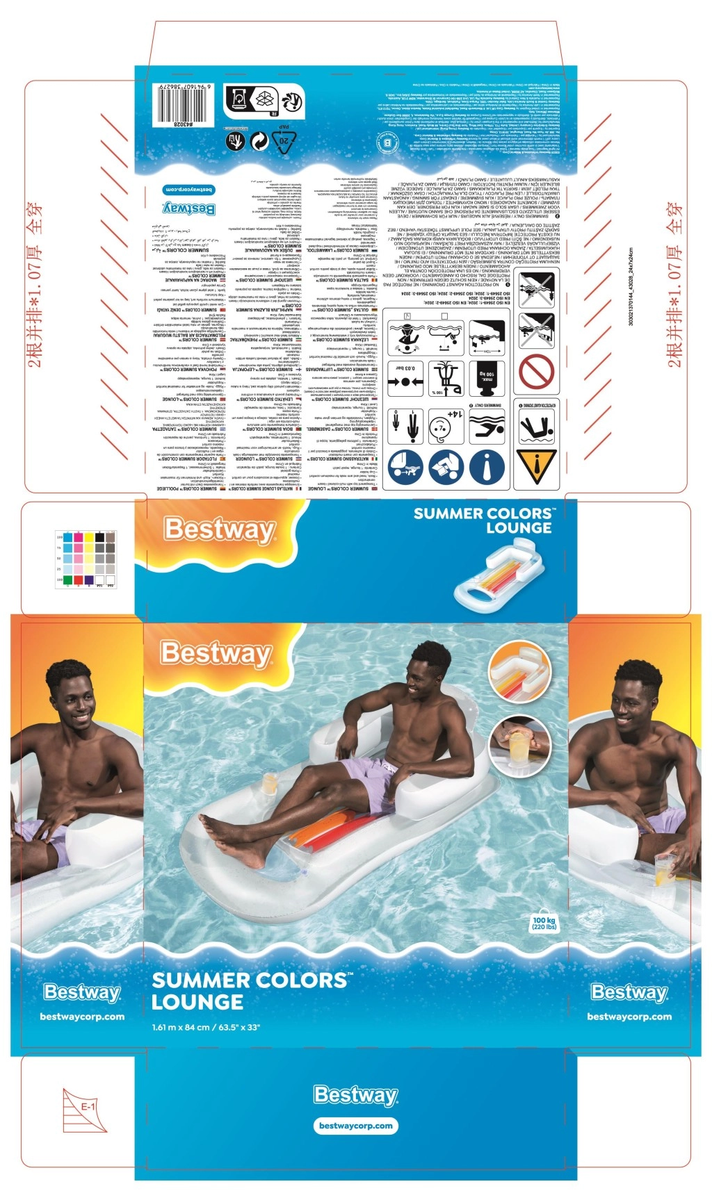Stilingas BESTWAY gultas puikiai tinka poilsiui prie vandens. Ergonomiški atlošas ir porankiai užtikrina patogią padėtį gulint ir sėdint, o gėrimų laikiklis leis atgaivą turėti visada po ranka. Patvarus PVC (0,22 mm) tinka sezoniniam naudojimui ir lengvai prižiūrimas.