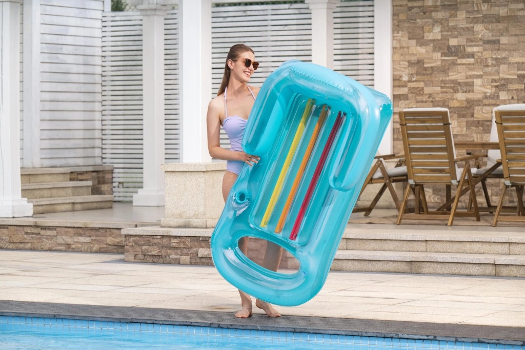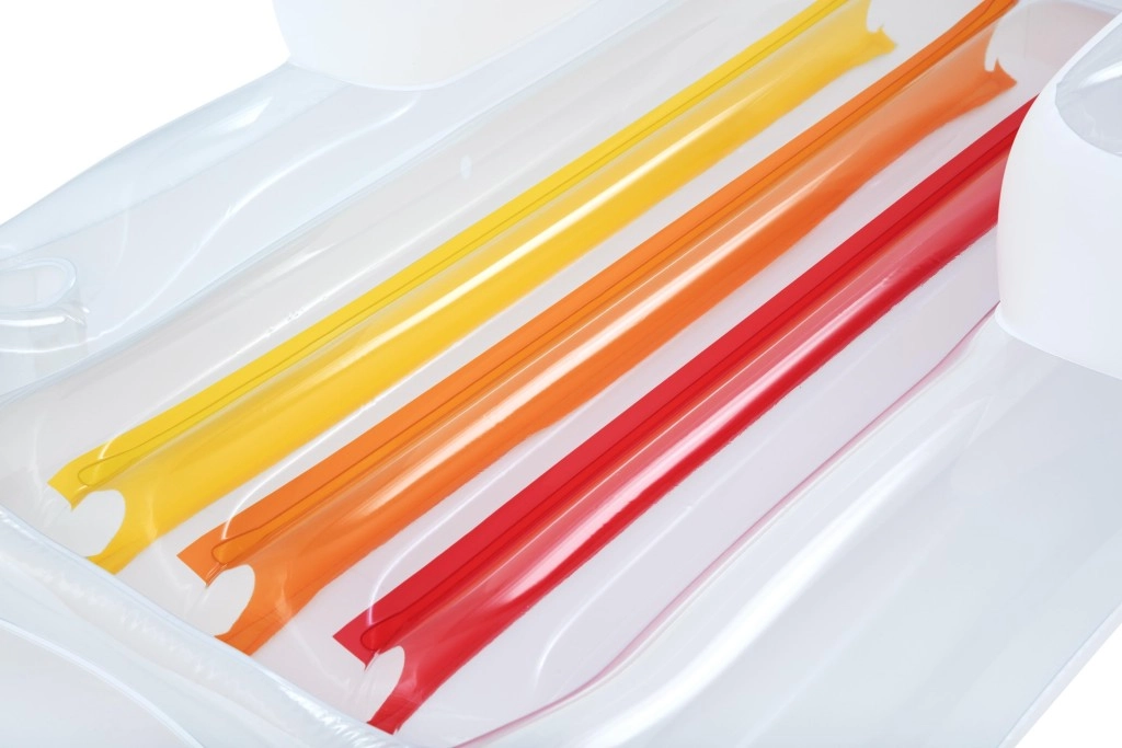 Dvikamerė konstrukcija didina stabilumą ant vandens ir saugumą. Gultas greitai prisipučia ir išleidžiamas, yra lengvas ir sulankstytas užima mažai vietos – puikus pasirinkimas atostogoms ar savaitgaliui prie baseino.