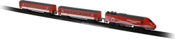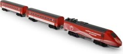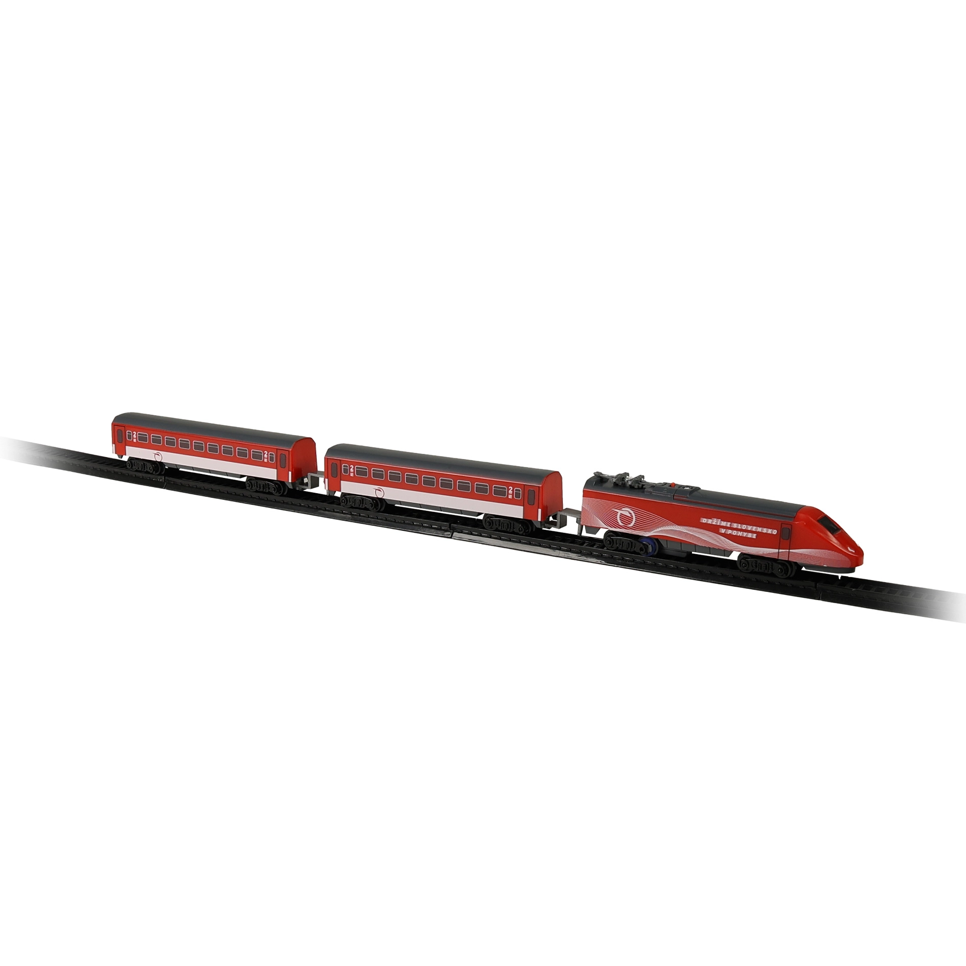 Rinkinyje yra 14 cm ilgio lokomotyvas ir du keleiviniai vagonai (13,5 cm), sujungti realistiškomis jungtimis. Bėgius, kurių vėžė 1,4 cm, sudėsite į ovalą iki 96 × 58 cm. Paprastas jungiklis lokomotyvo stoge leidžia greitai įjungti ir išjungti. Suderinamumas su kitais rinkiniais išplės trasą ir riedmenų parką.