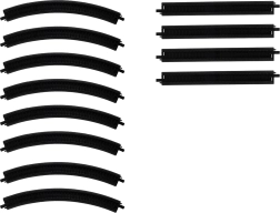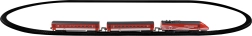 - Lokomotyvas, 2 vagonai, 8× lenktas bėgis, 4× tiesus bėgis