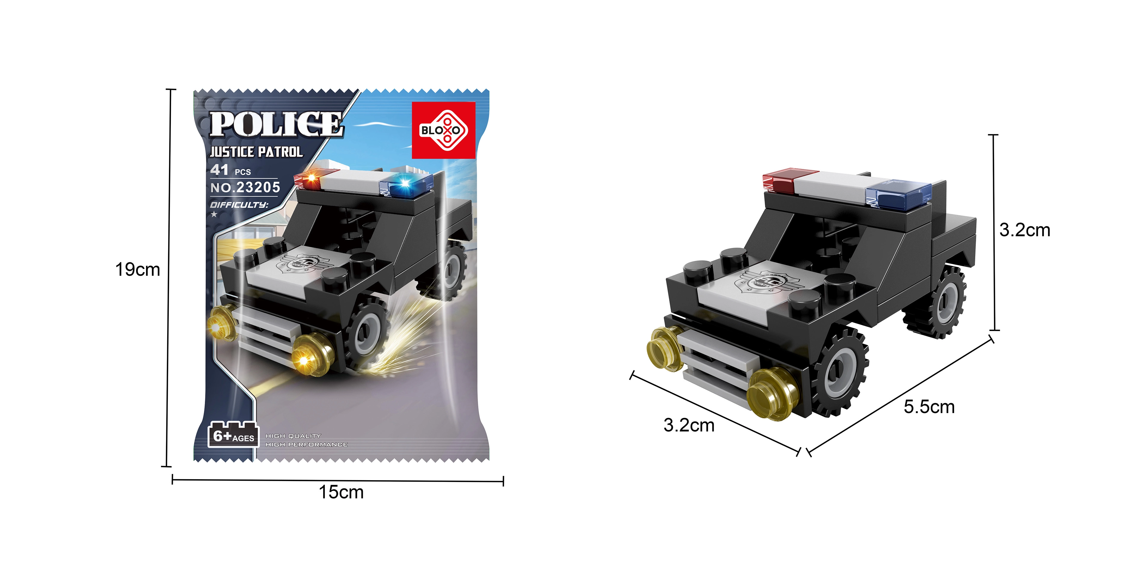 Leiskitės į veiksmo misijas su BLOXO policijos konstruktoriaus rinkiniu, kuris į vaiko kambarį atneša įtraukiančių istorijų ir pramogų. Vaikai lengvai susikonstruos savo policijos automobilį ir galės kurti naujus persekiojimų bei gelbėjimo scenarijus.
