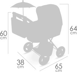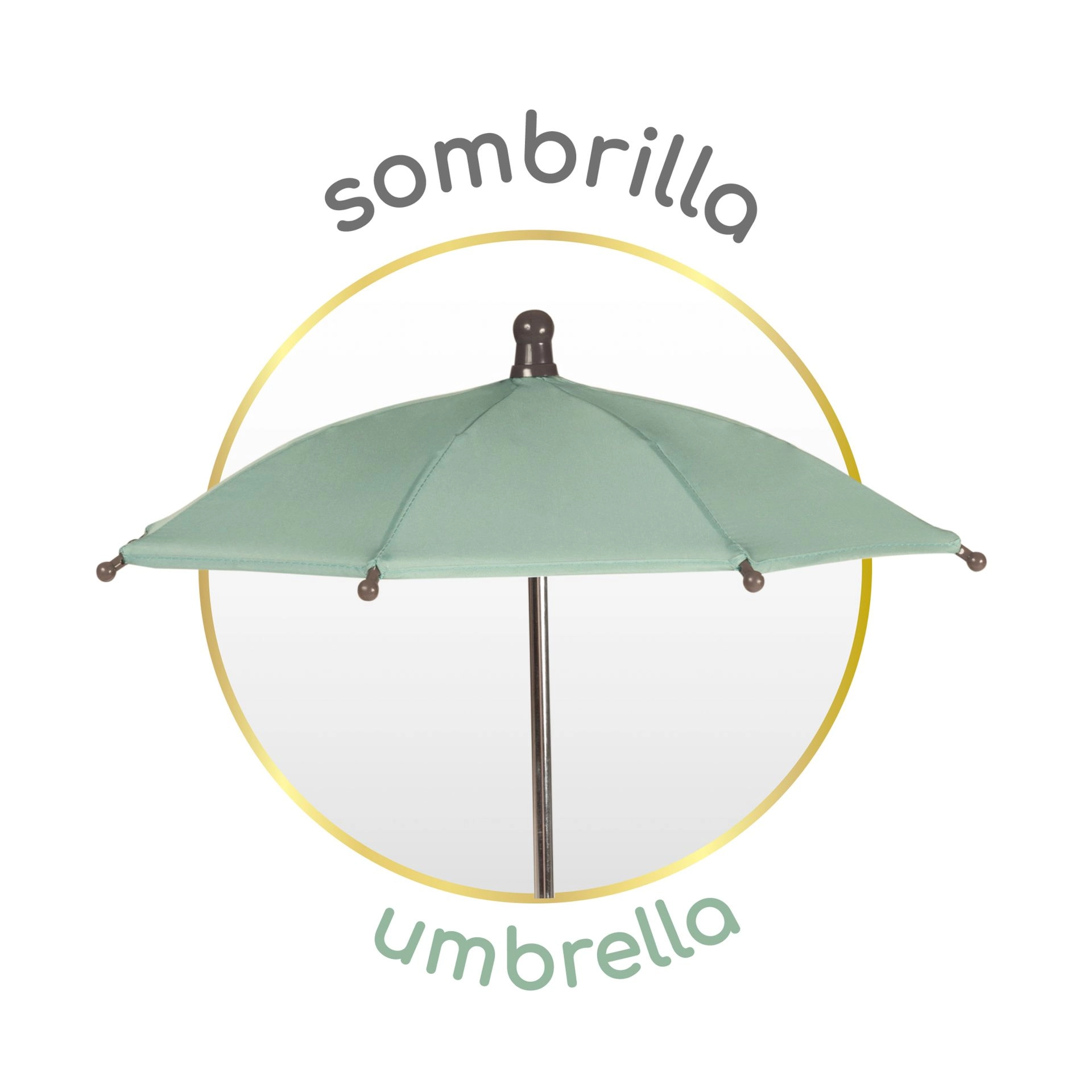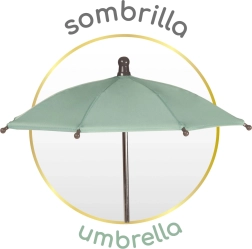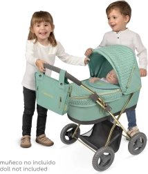 Vežimėlis puikiai pritaikytas kasdieniam žaidimui – nuo sulankstomo skėčio nuo saulės ir nuimamo krepšio su auksiniais užtrauktukais iki minkšto čiužinuko ir erdvaus krepšelio smulkmenoms. Kruopštus apdirbimas ir ispaniškas dizainas pabrėžia kokybę bei ilgaamžiškumą.