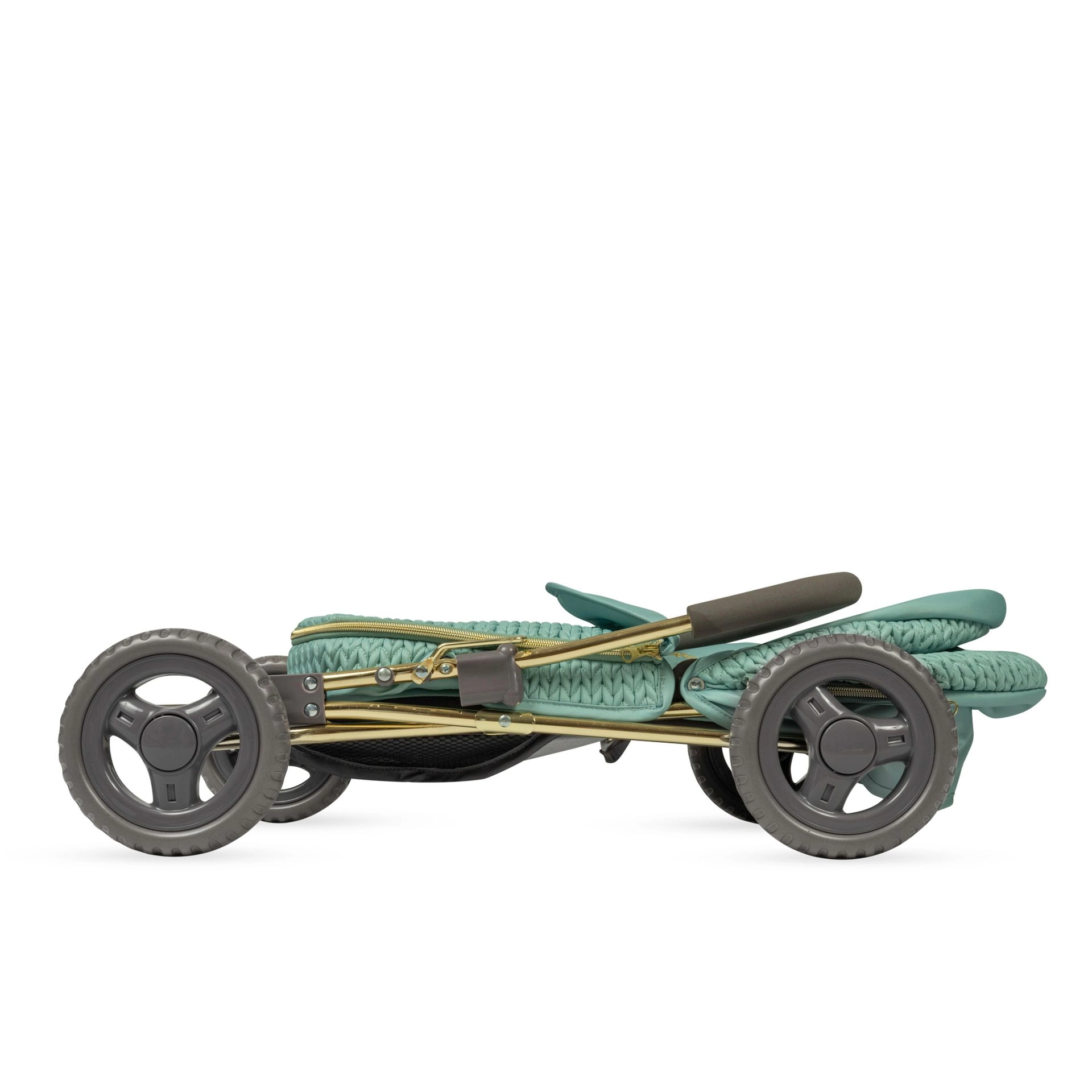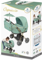 Stilingas lėlių vežimėlis iš kolekcijos Capriccio 2025 džiugina moderniu mėtų žalios spalvos dizainu, mažu svoriu ir paprastu valdymu. Jis turi sulankstomą konstrukciją, skėtį nuo saulės, nuimamą krepšį su auksiniais užtrauktukais, minkštą čiužinuką ir praktišką apatinį krepšelį – idealiai tinka mažesniems vaikams nuo 3 metų.