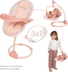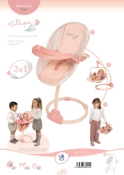 Stilinga vaikų 3 viename kėdutė ir sūpynės iš Tulipe kolekcijos sužavės švelniu dizainu ir išmaniu funkcionalumu. Dėl nuimamos dvipusės sėdynės ją galima naudoti kaip valgomąją kėdutę, sūpynes ir nešioklę. Yra saugos dirželiai, plastikinis maitinimo padėklas ir lengva, bet stabili konstrukcija patogiam naudojimui. Idealu lėlėms iki 50 cm ir vaikams nuo 3 metų.